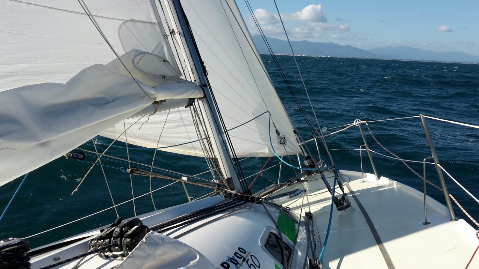 Les dernières nav ont été fantastiques et m’ont permis de monter en gamme avec le Pogo. Il accuse sans problème des vents de 30 noeuds sans jamais se sentir en insécurité. Des pointes à 10 noeuds avec trinquette et gv à 2 ris finissent de me convaincre que le Pogo est LE bateau du solo.