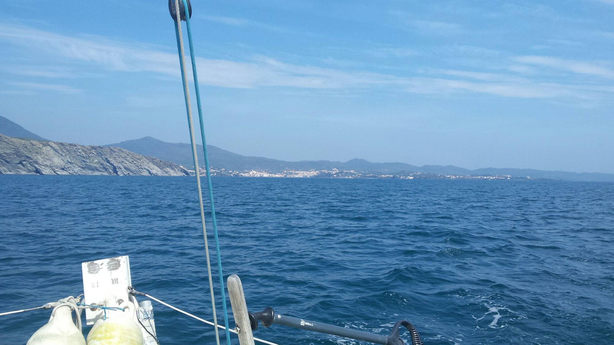 Nous passions ensuite au près serré devant Cadaquès avec un petit vent de 10 noeuds et nous étions à plus de 6 noeuds !