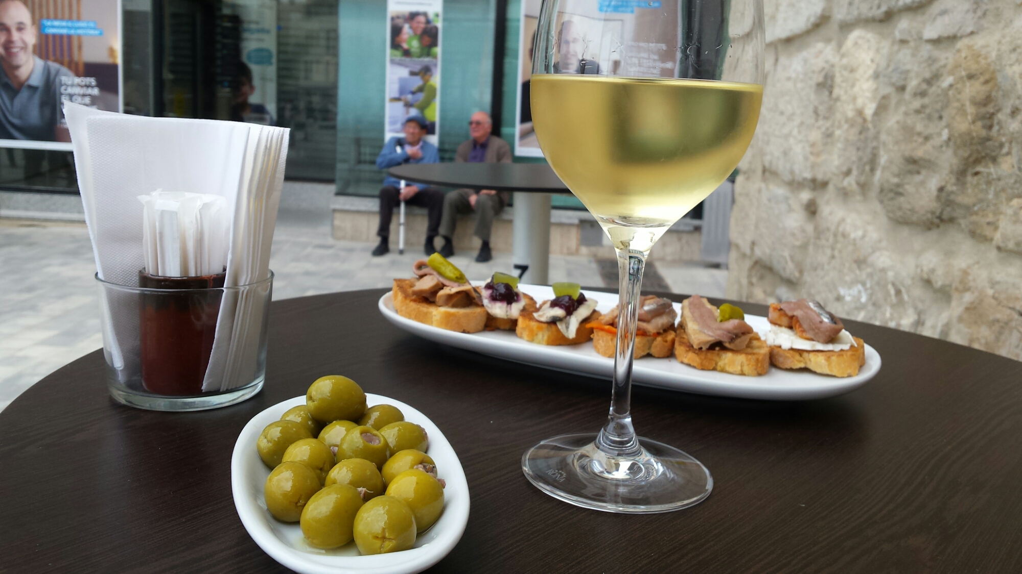 Sur le chemin je décidai de m’arrêter chez un petit revendeur d’anchois situé sur la plaça de la Sardane devant la crique principale de l’Escala. Je commandai quelques tapas d’anchois et un verre de blanc. Passé le moment sympa, le petit coup de bambou arriva : 19€ ! Quand je pense que quelques jours auparavant nous avions mangé pour 16.5€ un repas complet !