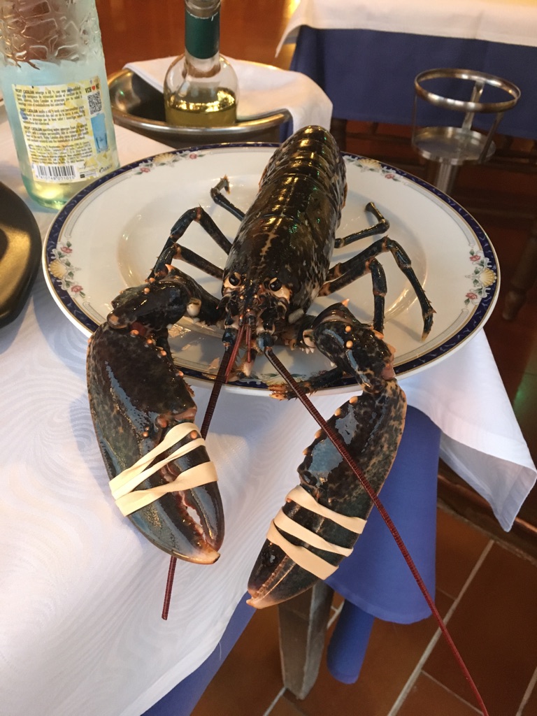 Tout est issu de la pêche locale. Le homard nous a d’abord été présenté en personne avant d’être dégusté grillé. Povret…
