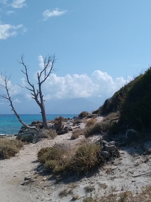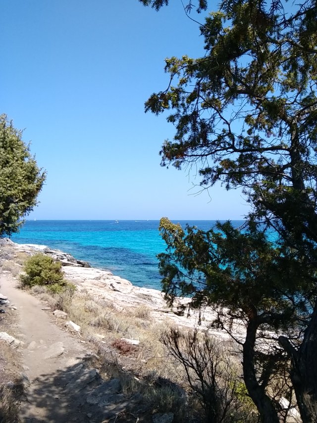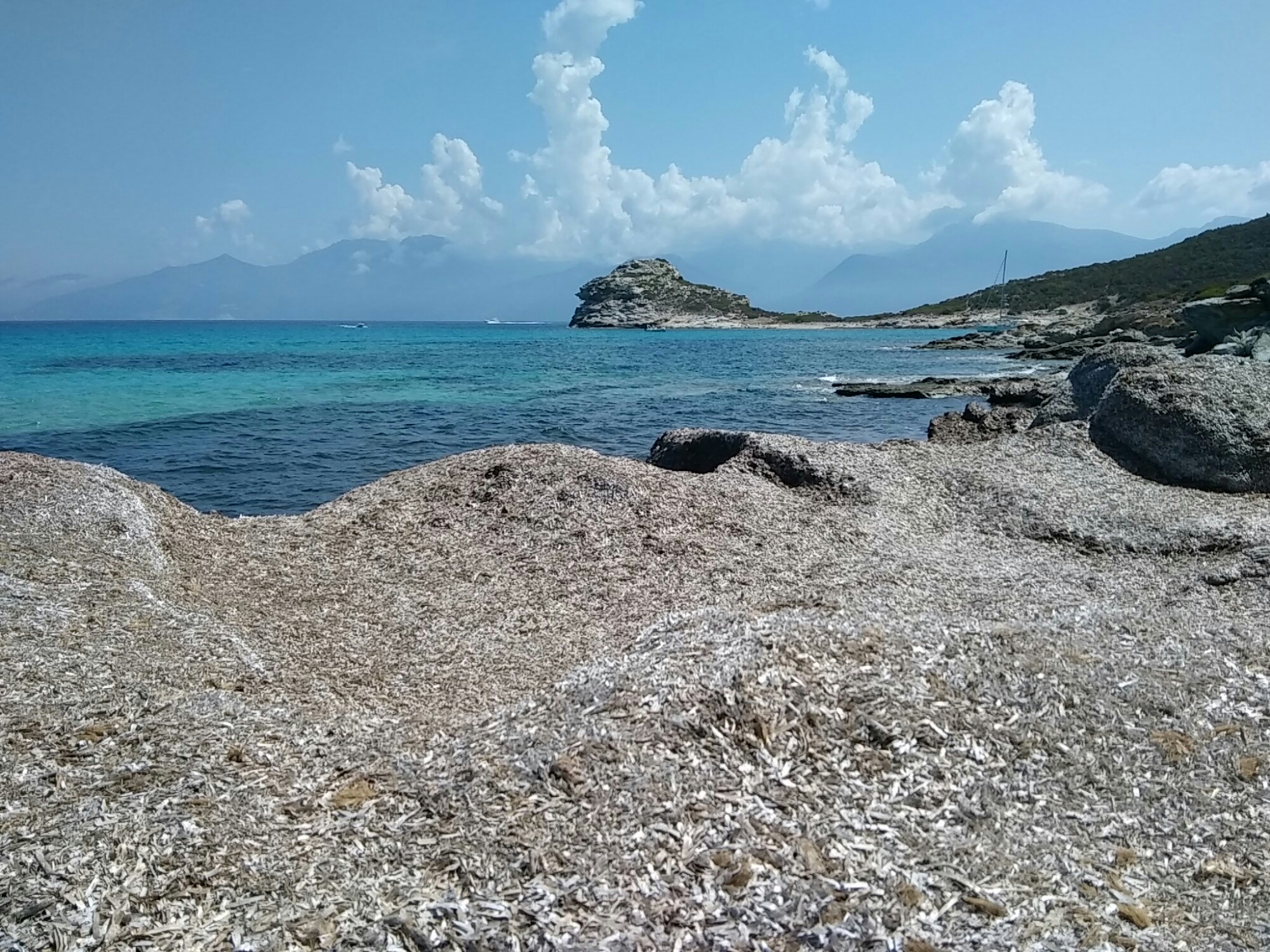 Je devais initialement passer le Cap Corse mais je décidai de rester encore dans ce magnifique endroit que je n’ai pas encore pu explorer. Je mis pied à terre en fin de matinée pour partir sur le sentier côtier découvrir les trésors du littoral. J’arrivai à une côte découpée avec, sur les rochers, des montagnes de posidonies mortes (je répète c’est normal c’est un cycle naturel). J’allai pied nus sur les sentiers en mode Robinson et c’est ainsi que j’allais marcher sur ces monticules. La sensation était douce et les odeurs marines.