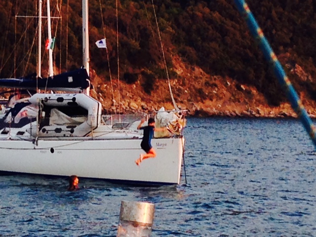 Hier, samedi, nous sommes allés dans une cala derrière le Capo dela Vita, étrangement nommé. En face se trouvait le port de Piomboli, la belle Toscane, terre de mes ancêtres ! Je n’ai jamais été aussi loin en bateau. L’envie était forte de continuer le voyage encore et encore. C’est enivrant et grisant de découvrir le monde en bateau. Un jour je le ferai, c’est certain !