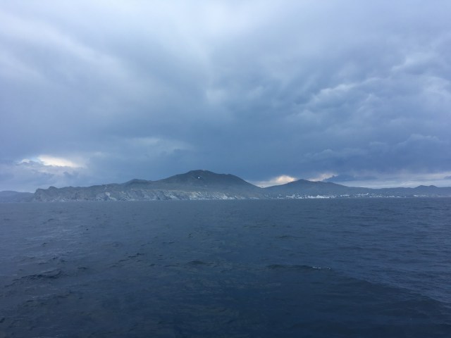 Mais la météo devint inquiétante avec de gros nuages menaçants et l’apparition d’éclairs sur les terres. Au sud le temps semblait magnifique et nous essayions tant bien que mal de fuir ce mauvais temps vers des cieux plus cléments. Mais à chaque fois nous avions l’impression que ces gros nuages nous suivaient et nous empêchaient de sortir de cette zone.