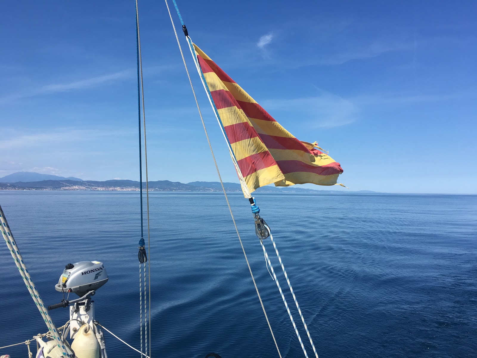 Décision fut prise de rallier le port de l’Escala après avoir hésité sur celui d’Estartit. La navigation fut sympa entièrement à la voile jusqu’à l’arrivée. Le port est toujours aussi sympa et moderne. Seul bémol il est loin du centre mais le confort et la tranquillité est à ce prix. Comme souvent dans les ports de la Costa Brava, le personnel est très serviable avec 2 marineros en voiturette de golf venus nous aider pour l’amarrage !!!