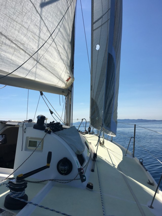 Nous partîmes par un temps de demoiselles. Pas ou peu de vent et beaucoup de moteur…