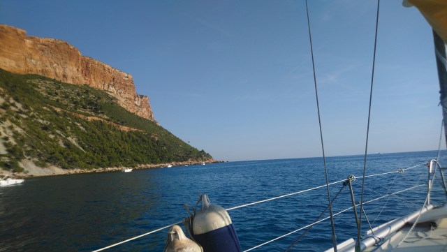 J’arrivai bientôt devant Cassis après 10h de mer et je choisi de mouiller dans l’anse de l’arène à 2 pas du port. Une baignade revigorante allait bientôt clôturer cette belle journée de voile sans moteur.