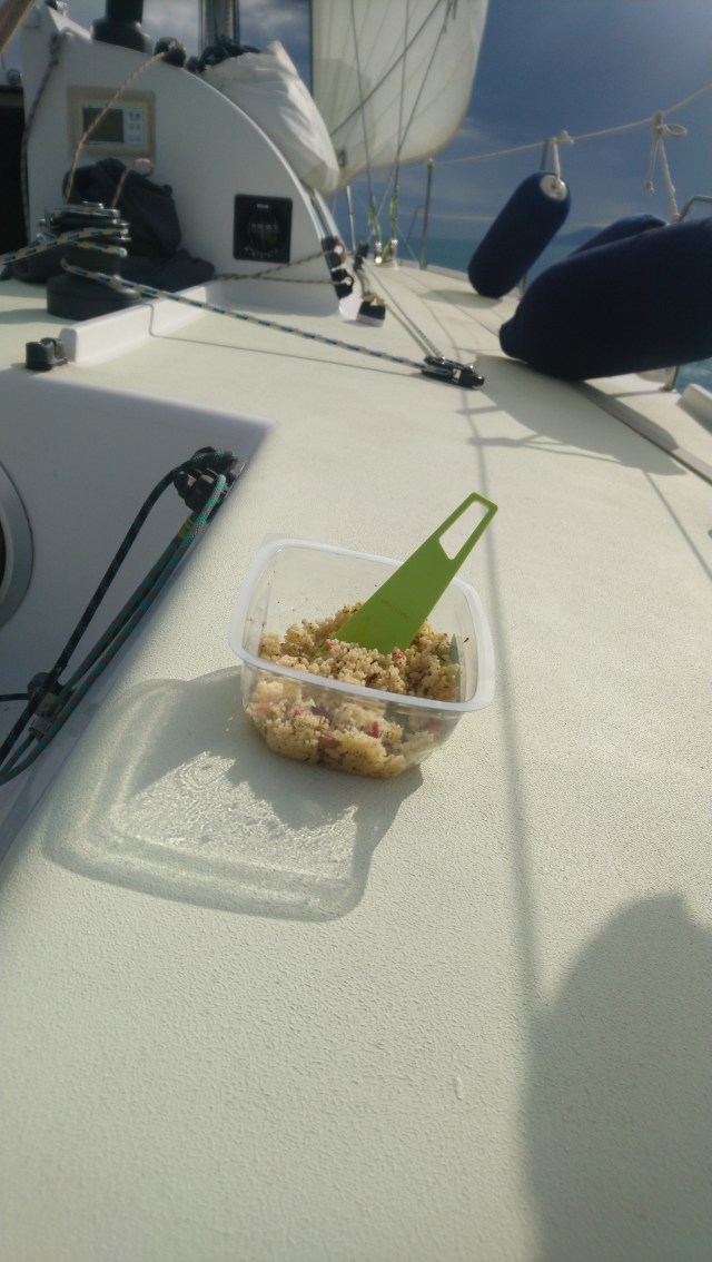Revenons à cette journée de dimanche. J’ai le cœur un peu plus léger aujourd’hui surtout quand j’ai commencé à sentir le vent fraîchir. Celui ci vient de l’est. La météo annonçait de la grosse houle à partir de l’après midi. On va voir comment ça se déroule.