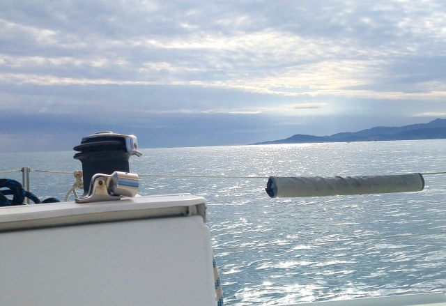 Le froid commence à faire son office sur le bateau en approche du Cap Béar. Sur mon tribord je vois les mâts du Belem stationné à Port Vendre, tout droit face aux étraves ces falaises odorantes du Cap que j’ai tant arpenté. Comme j’aime mon pays !