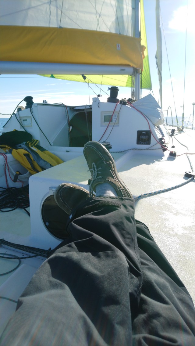 C’est donc dans un état d’esprit positif que j’aborde ces quelques jours de vacances pour Noël 2018. En terme de navigation c’est plutôt du tranquille voire même du méditatif. Peu voire pas de vent et une mer miroir. Le soleil, pourtant d’hiver, est chaud et me redonne des idées d’été avec ses fameux scintillements sur l’horizon paisible.