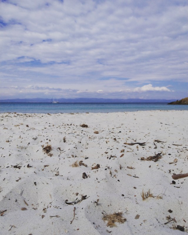 Balades dans l’île, sieste, niché comme un goéland en haut d’une falaise sur la côte Sud, un thé vers 17h dans le bistrot de la plage d’argent. C’est étrange comme cette plage, absolument paradisiaque est quasi vide aujourd’hui et si pleine jusqu’à l’asphyxie durant l’été. 2 mondes pour un seul endroit. En regardant le large et les quelques voiliers au mouillage je m’imagine l’avenir pour des endroits comme celui ci. Je parie que la fréquentation en sera devenue interdite par trop d’abus. C’est toujours ça le problème… L’abus et la multitude… Une bouteille en plastique balancée à la baille n’est pas un drame en soi, le problème ce sont les millions balancées. Où est la solution ? Le retrait pur et simple du plastique de tous les produits de consommation. Retrouver les bouteilles en verre, cela créerait forcément une économie. Et comme ce sont principalement les pays développés qui packagent ces produits et les vendent aux autres pays, on briserait une fois pour toute le cycle infernal.