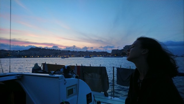 Tout d’abord passons à la préparation du bateau avec nettoyage et rangement. Une fois ces corvées effectuées je vais à terre pour la première fois depuis mon départ pour aller me prendre un café en terrasse. J’adore arriver dans un port à l’annexe. Il y a un côté aventurier de la mer ou flibustier.