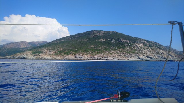 La navigation se passe paisiblement sous vent léger à longer une belle côte sauvage et découpée.
