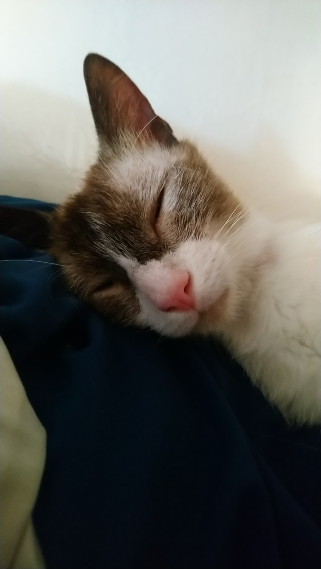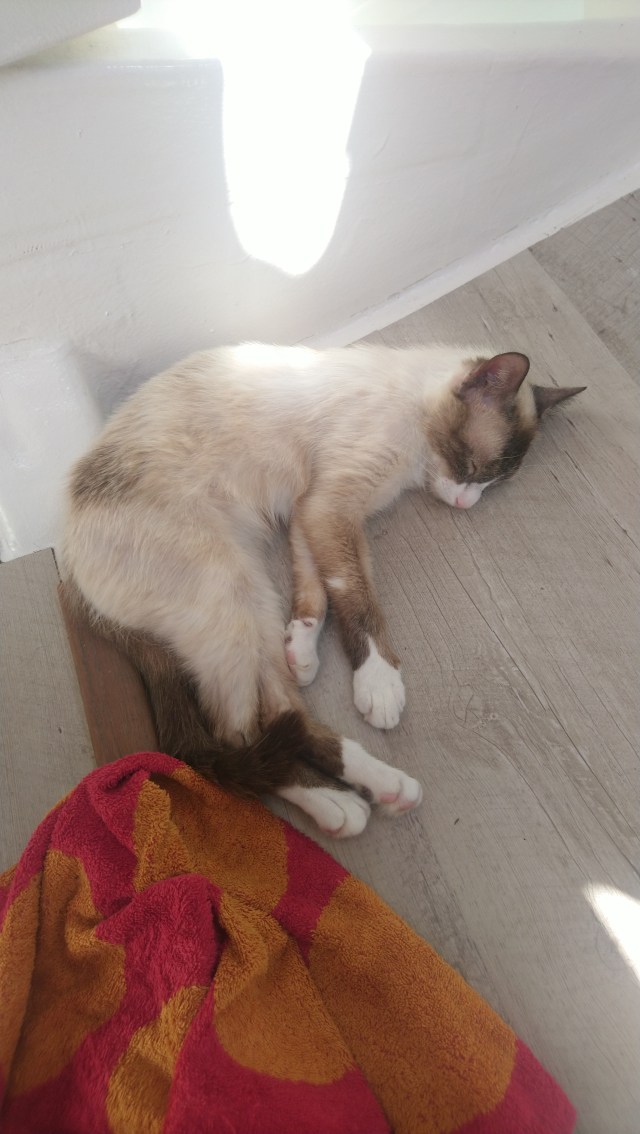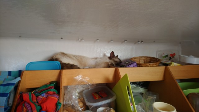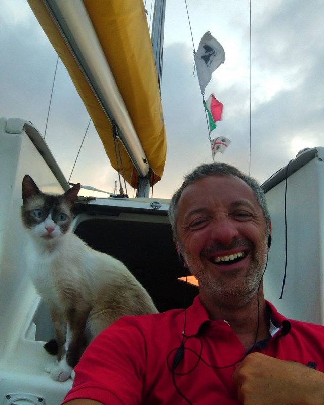 Pendant ce temps Solenzu émerge doucement. Cette première navigation pour mon compagnon est plutôt encourageante car il n’a jamais eu peur ni le mal de mer, il a dormi tranquillement.