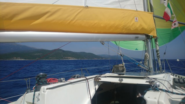Nous doublons le cap Corse après avoir rangé le spi à cause du vent fort qui venait du travers maintenant.