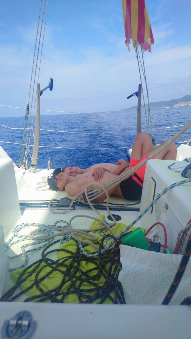 Une fois à l’île Rousse c’est l’heure des adieux. Ces 2 jours en leur compagnie auront été une belle parenthèse pour moi. Quant à eux, ils auront appris des nœuds, de nouvelles règles au monopoly et rigolé en plongeant et replongeant depuis le pont.