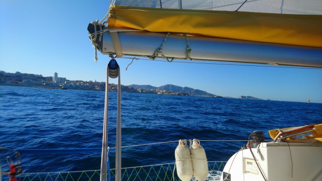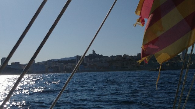 Départ, ce matin, de Marseille, pour rallier mon port d’attache Saint Cyprien en Catalogne Nord et mettre un terme à cette belle croisière, toujours plus initiatique. Car il faut bien rentrer pour pouvoir repartir. Nous avons appareillé il y a déjà quelques heures avec Solenzu, précisément à 9h depuis ce sympathique et confortable club nautique du vieux port de Marseille.