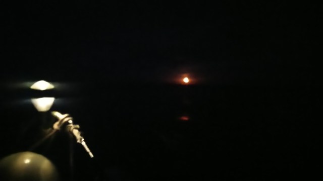 2h : le vent faiblit et une immense humidité s’abat sur le bateau jusqu’à créer une pluie microscopique. C’est alors que je reçois la visite de Solenzu n’en pouvant plus d’être seul en bas. Il vient se blottir sur moi assis dans le cockpit. Son poil est tout ebouriffé et je crois qu’il a froid. Son ronron est si apaisant, c’est un fantastique compagnon. D’ailleurs à ce sujet j’ai rencontré hier soir sur le ponton de Marseille un gars bien sympathique qui m’a conté Florence Artaud qu’il a connu et notamment son chat, adopté dans des conditions similaires à moi mais au Maroc. J’ai aussi apprécié sa bienveillance en me mettant en garde sur la traversée du golfe du lion dans les conditions prévues. Merci à toi !