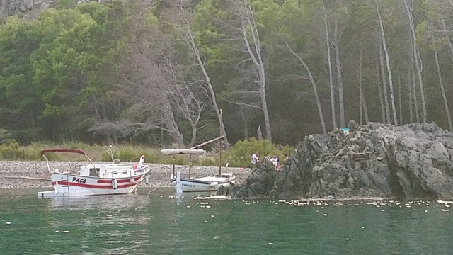 Les 20 milles de St Cyprien vers cette crique sont avalés en quelques heures et l’arrivée est toujours magique avec une brume légère qui rend celle ci fantomatique et mystérieuse.