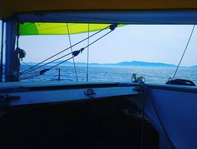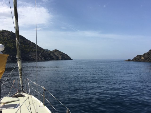 Je suis avec mon cousin et Solenzu, qui n’était pas revenu au bateau depuis la croisiere de cet été, nous partons en direction du sud pour une belle journée de voile qui s’annonce agréable et douce. Nous décidons de mouiller l’ancre dans ma fameuse cala Tamarilla dans la baie del Golfet sur la côte nord du Cap de Creus.