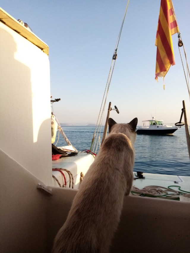 Je voulais revenir sur ce territoire que j’aime tant, la Costa Brava, et ses souvenirs. J’ai commencé par la cala del Garbet, située au dessus de Llanca, où nous avons, Solenzu et moi, savouré un mouillage paisible seuls au monde après une navigation tranquille depuis Saint Cyprien.