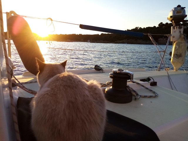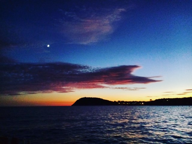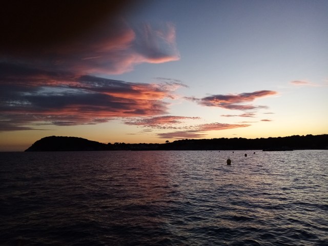 L’arrivée dans la cala est magique avec un coucher de soleil seul au monde et des odeurs de pins et de fenouil sauvage émanant de la terre. Cette vision suffit à me rendre la foi en l’avenir.
