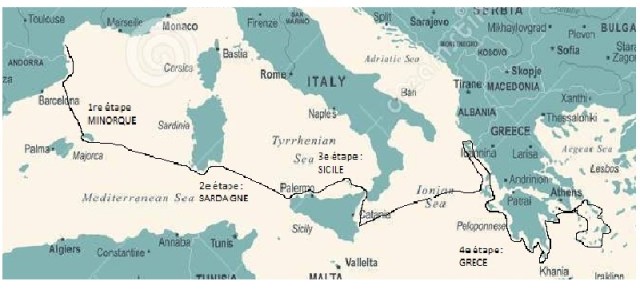 Place ensuite aux îles Éoliennes, puis le détroit de Messine jusqu’à Syracuse.