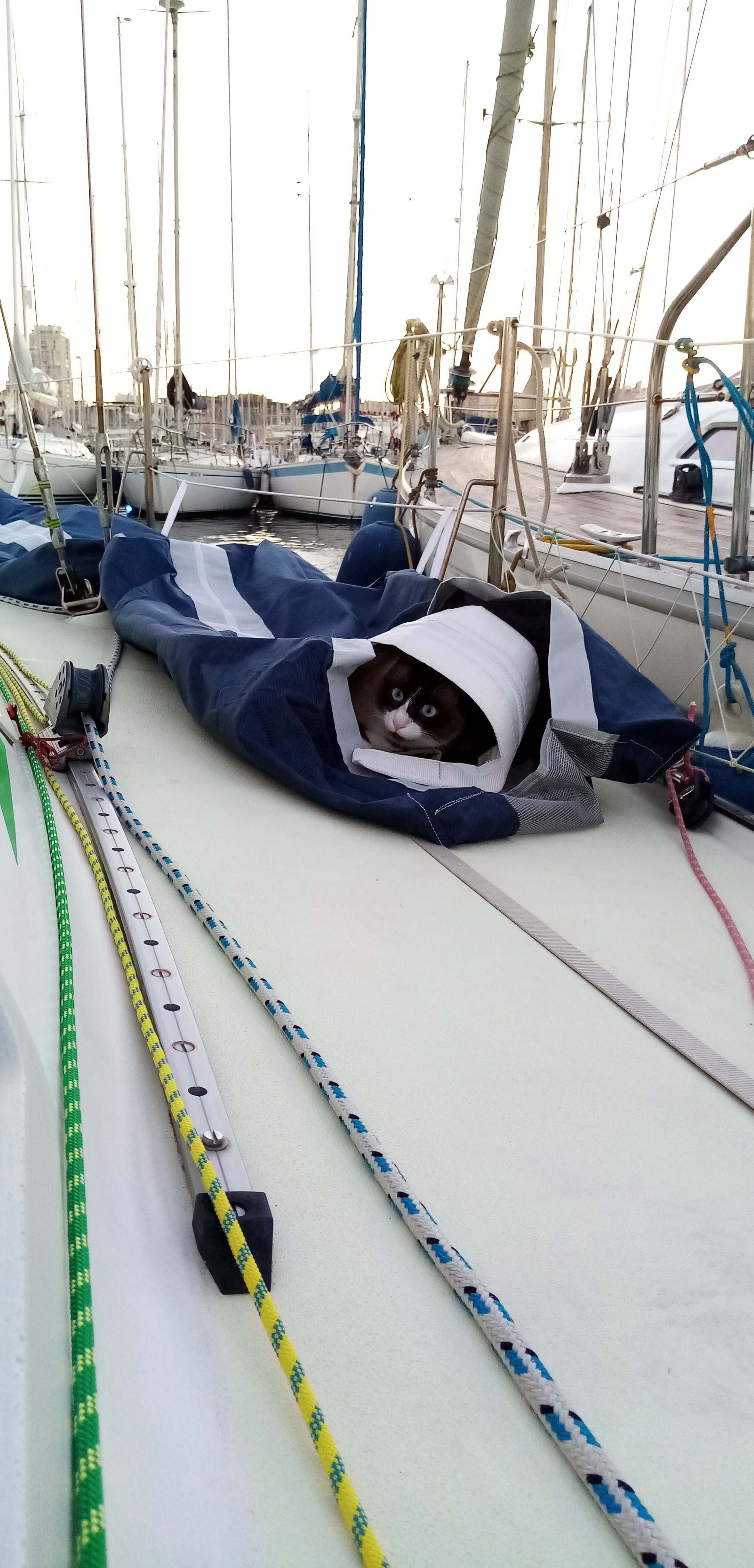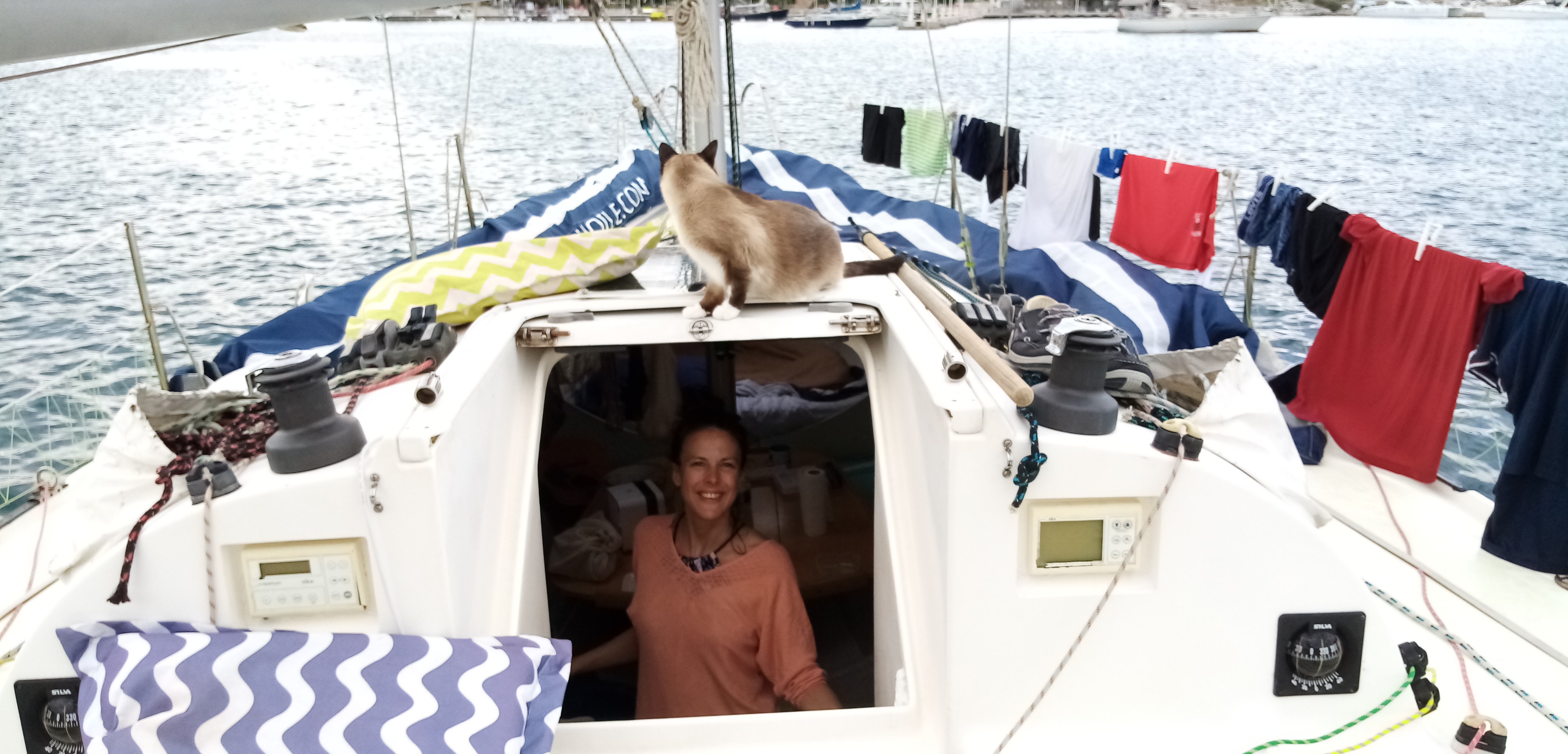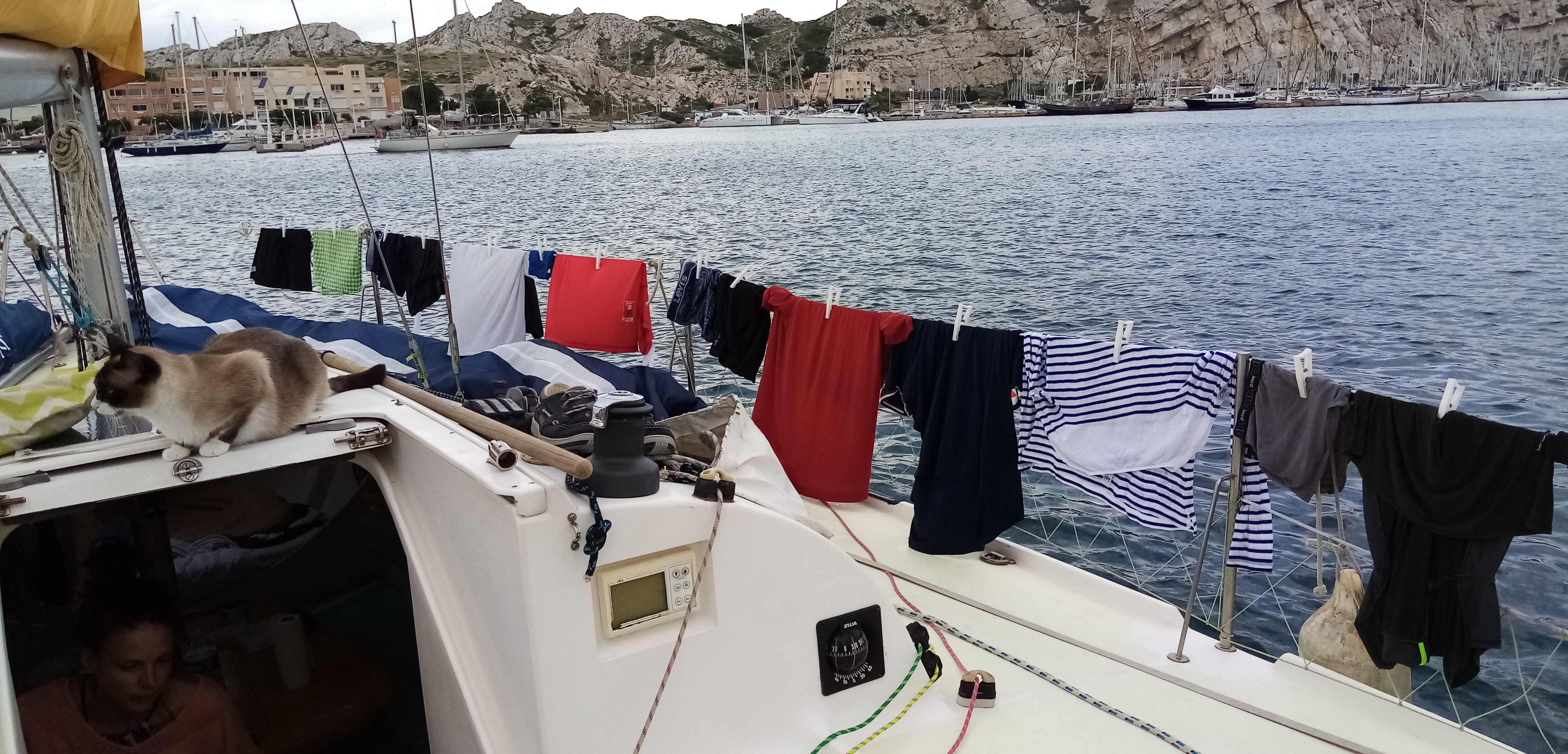 L’après midi est consacré à la lessive et au sempiternel nettoyage de Babar. Nous ressemblons à des bohémiens de la mer, seuls au bout de notre ponton, vide d’autres bateaux.