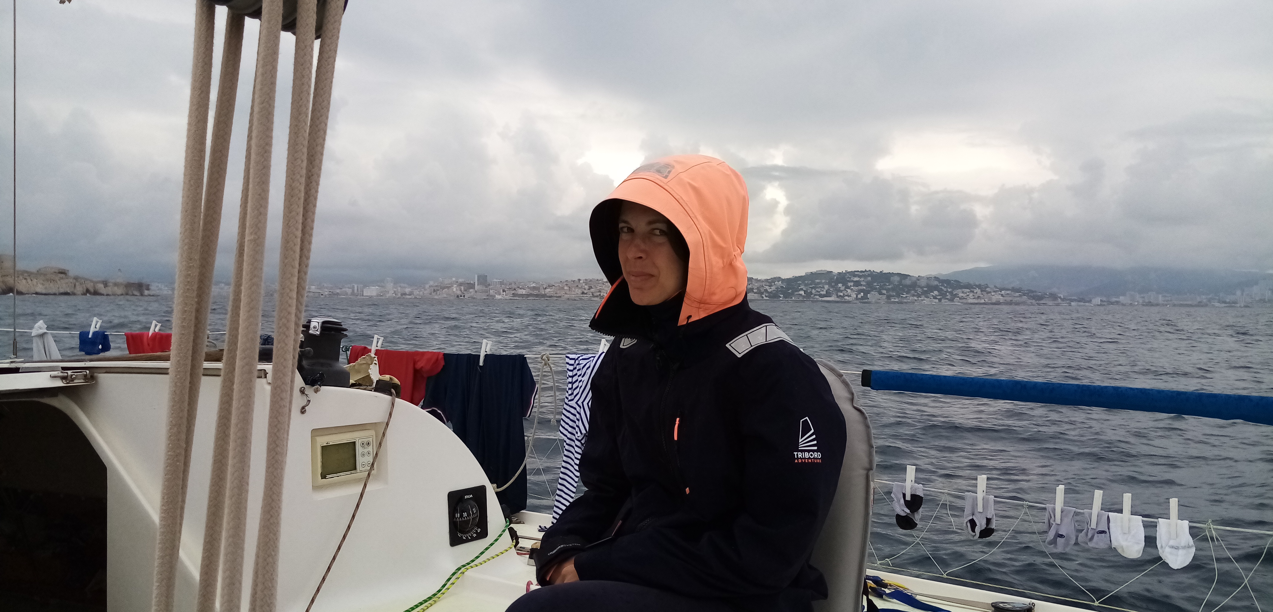 Le lendemain est un peu lourd à l’image du temps maussade et pluvieux. Une tempête de pluie et de vent nous a copieusement arrosé et balotté durant la nuit. Nous décidons de quitter le Frioul car le Mistral va se lever et le port n’est pas bien abrité. Après quelques tergiversations, nous allons au vieux port de Marseille et plus précisément au club nautique.