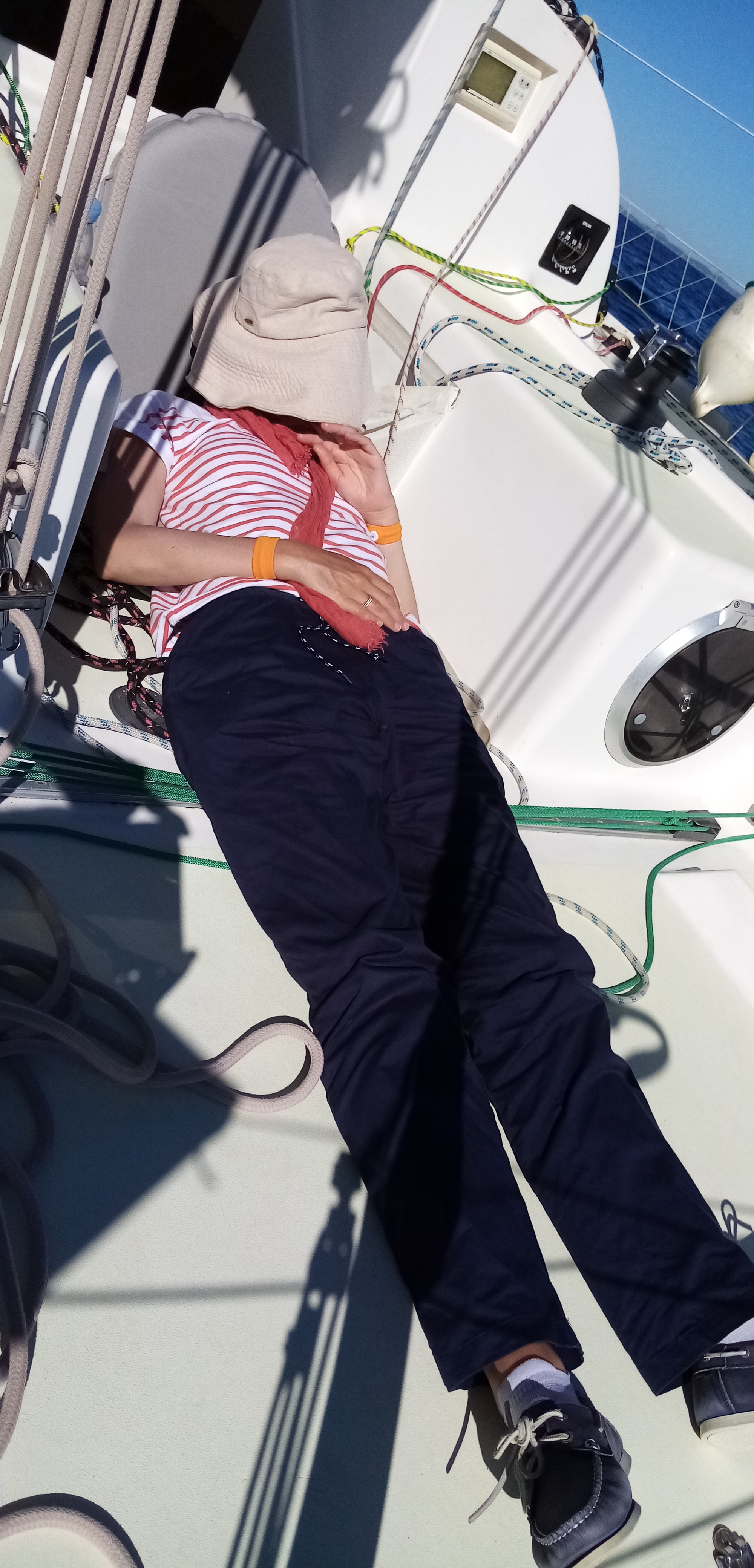 Après avoir largement dépassé Cassis, le vent se casse littéralement la gueule. La météo s’était pourtant chauffée le dard en annonçant un Grand Frais. Résultat on se retrouve empêtrés dans la pétole avec la houle, la pire des situations pour nos estomacs. Je décide de mettre fin à notre calvaire et de rallier la Ciotat, port le plus proche de notre situation. En avant pour 1h de moteur.