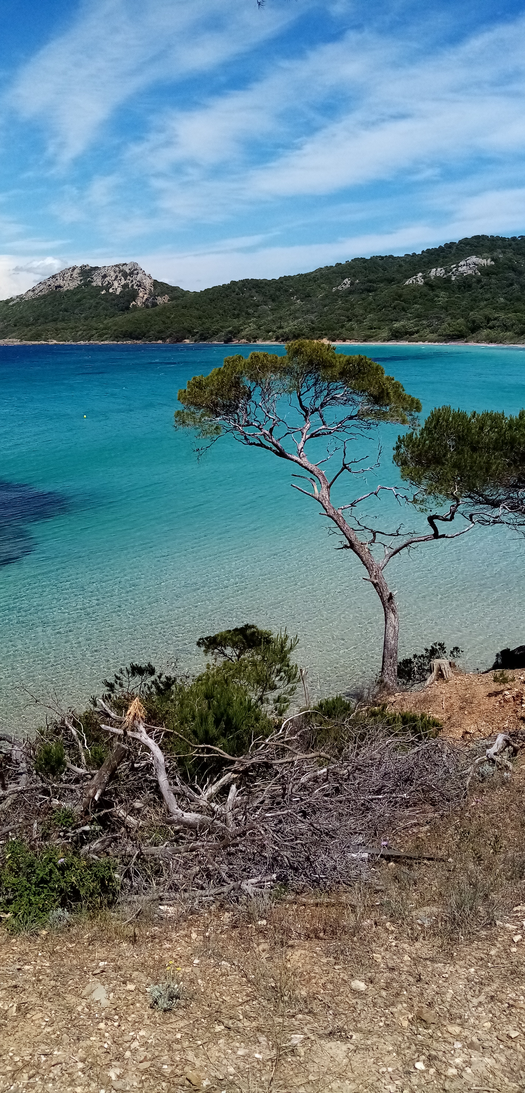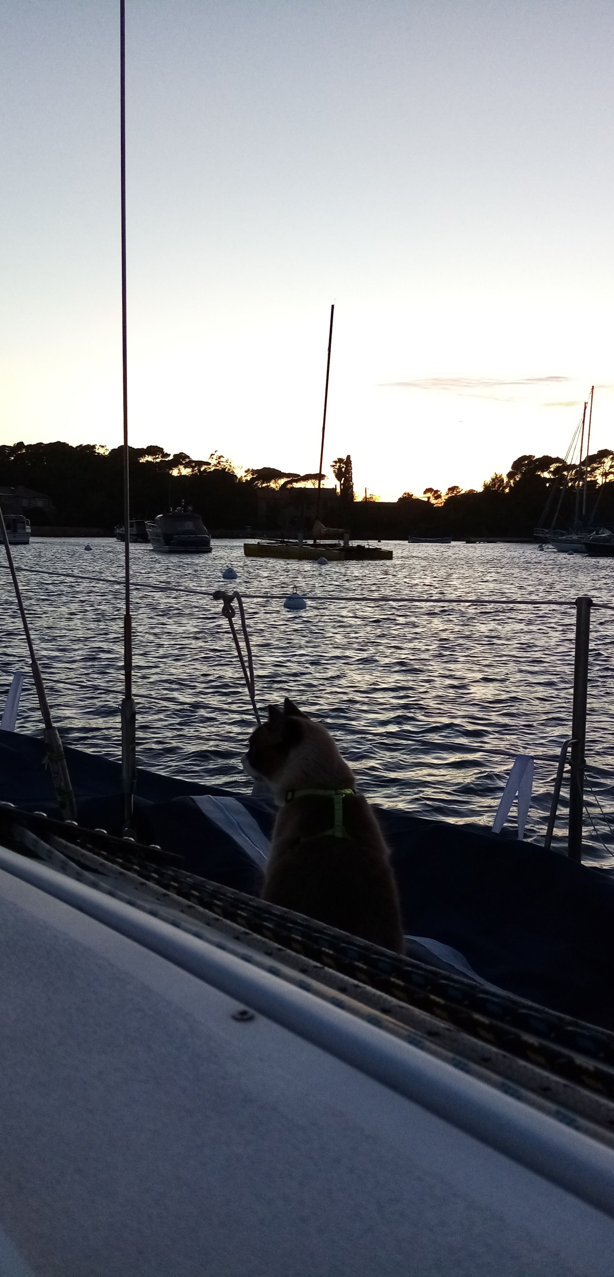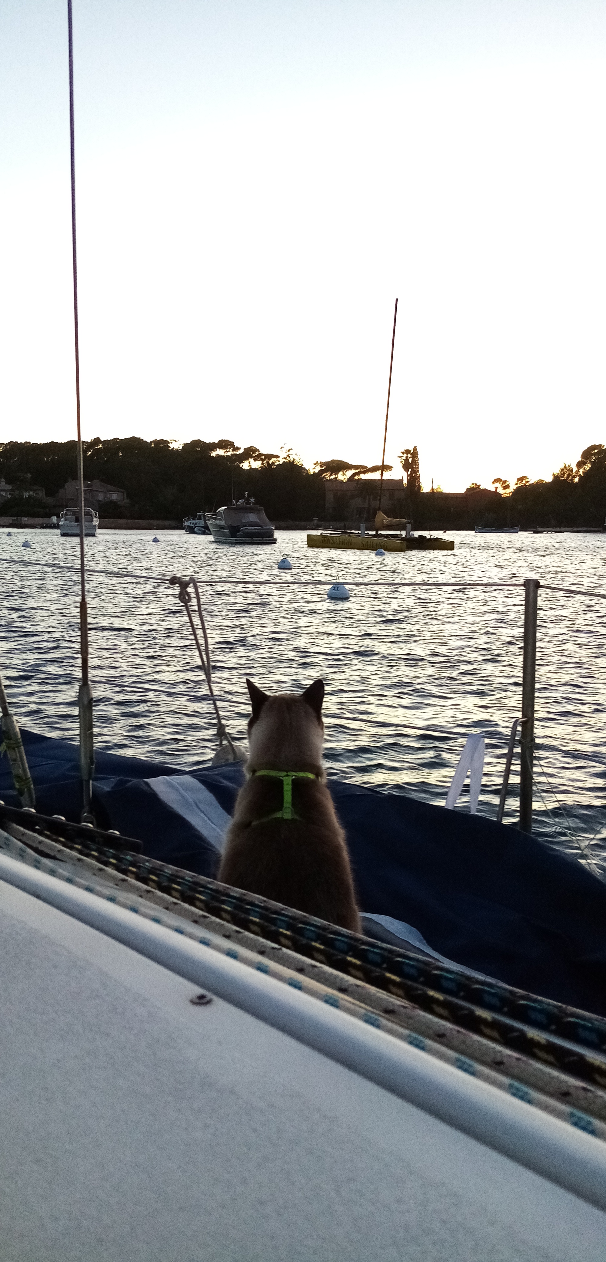 Nous arrivons enfin à Porquerolles où nous allons prendre une bouée dans l’avant port. Après avoir gonflé l’annexe pour la première fois, nous mettons pied à terre pour s’initier à la douceur de la vie d’ici, si particulière. Je m’émerveille à chaque escale moi, et Porquerolles ne déroge pas la règle. Quand on arrive depuis la mer, tout paysage, toute crique, tout port est un enchantement pour qui a le cœur et l’âme ouverts et ne cède pas aux affres de la politique consumériste du serial homo turisticus exacerbé par l’usage des réseaux sociaux. Je hais les checks…