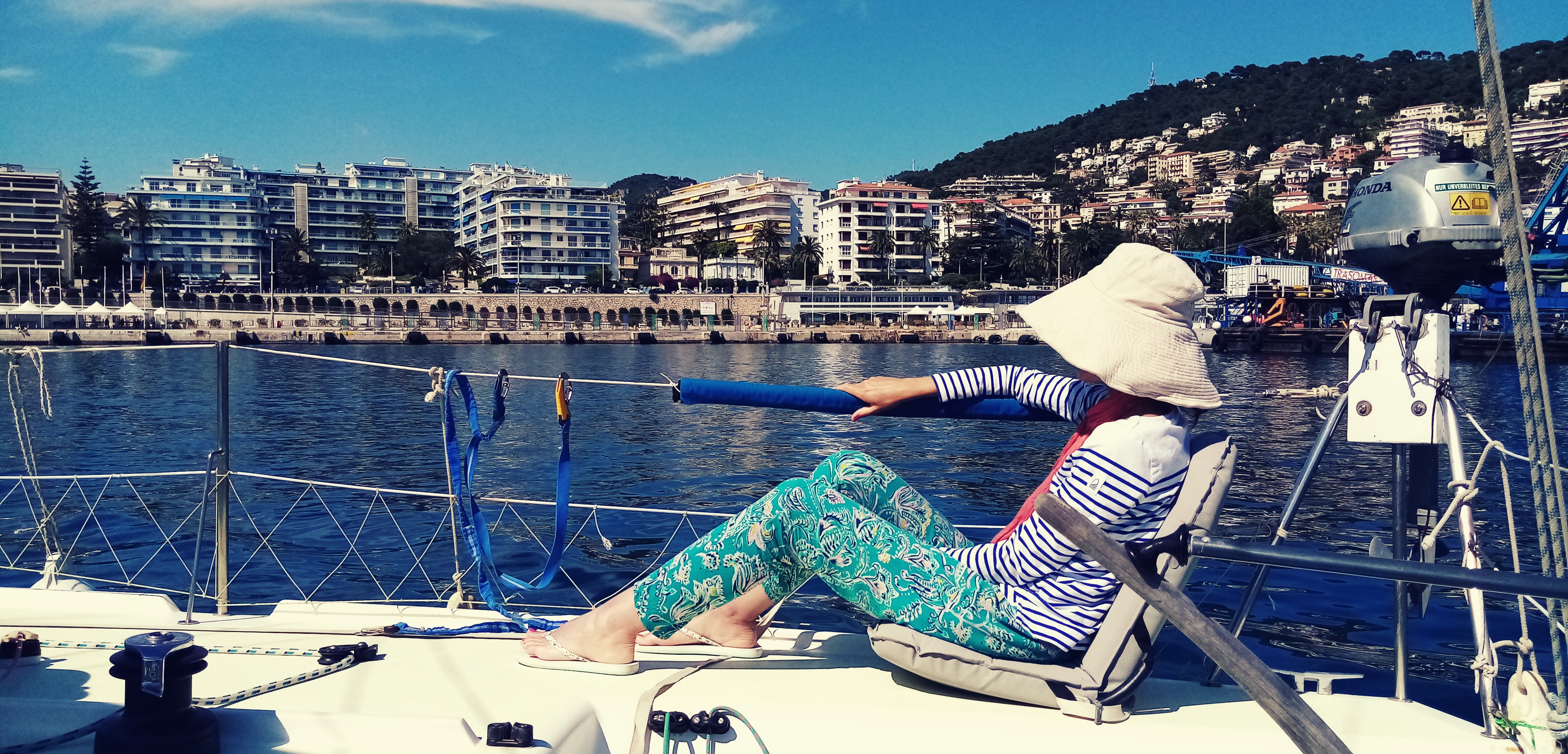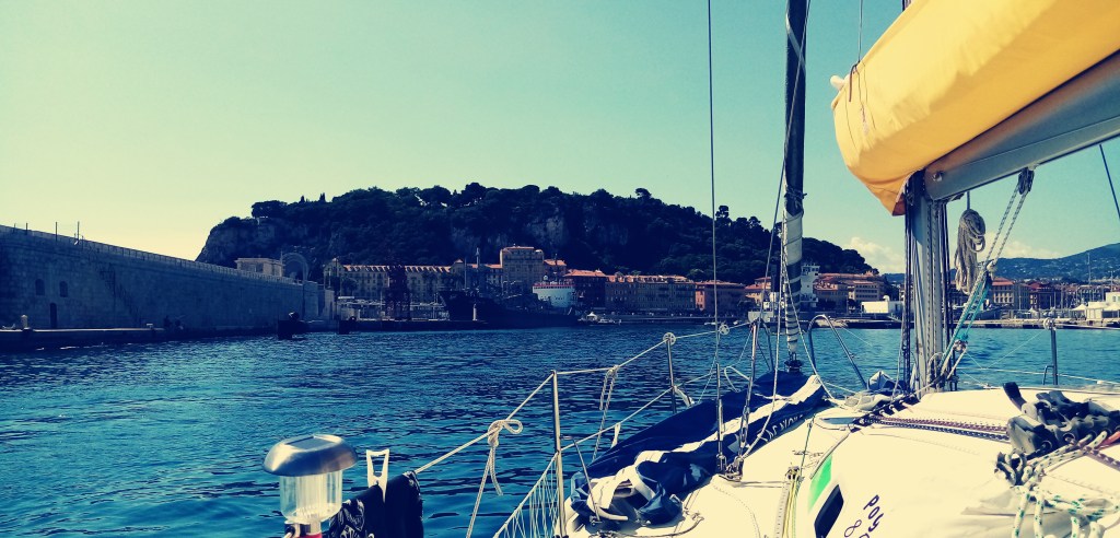 La météo est toujours incertaine. Je n’ai jamais mis autant de temps pour aller en Corse. Qu’importe, contre mauvaise fortune bon cœur, nous décidons de flâner ici ou là… Première escale à Antibes. Nous arrivons sous une chaleur montante aux pieds des remparts. L’emplacement est idéal pour découvrir les ruelles de la vieille ville. Mais l’envie n’est pas de rester longtemps ici. Dès le lendemain nous mettons le cap sur le vieux port de Nice situé à 10 milles de là.