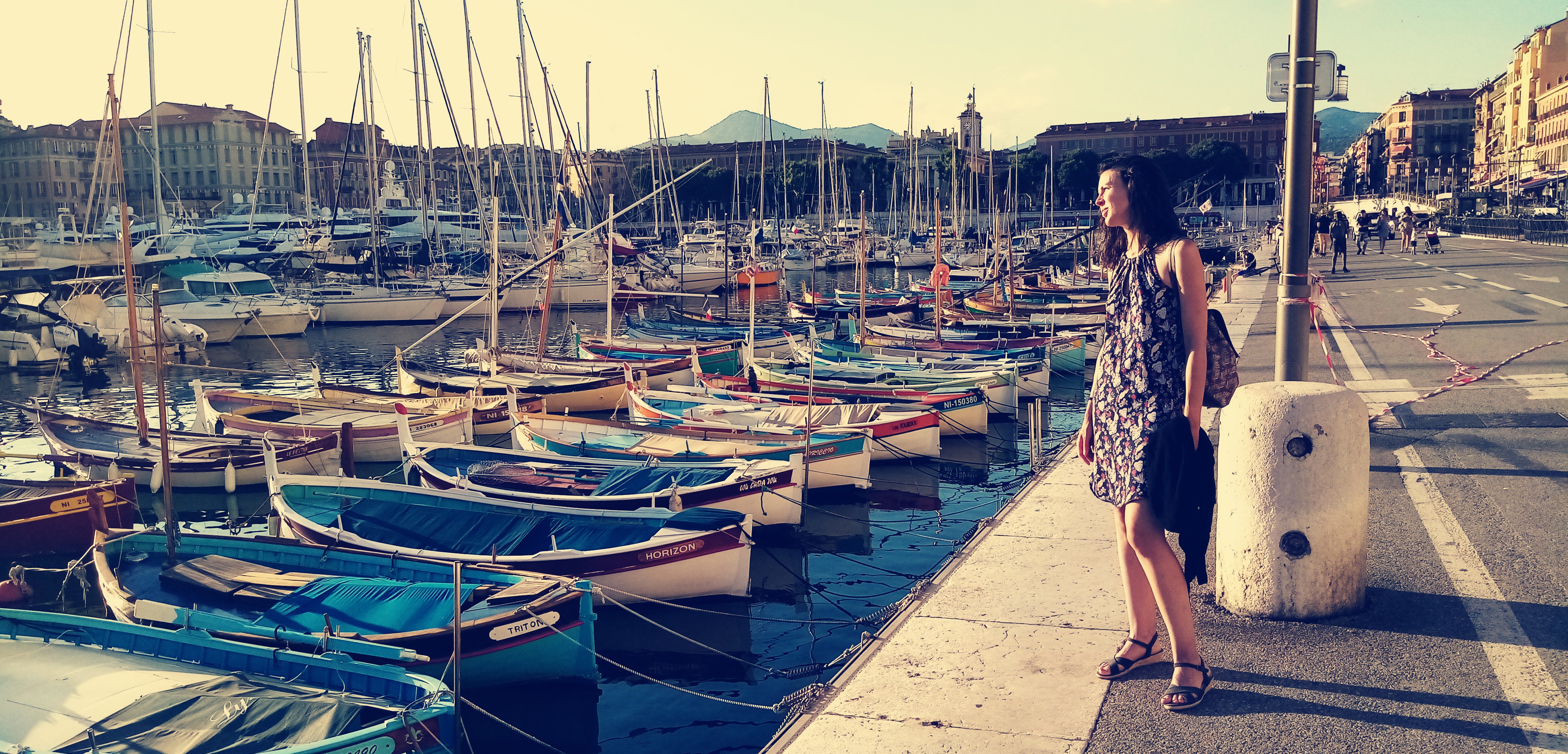 L’arrivée sur Nice est par contre un enchantement. Blotti contre les roches dans une anse naturelle entourée de hautes collines, le vieux port de Nice se laisse approcher comme un joyau que l’on découvre dans son écrin. Les bâtisses qui l’entourent sont elles aussi d’un charme suranné fou, d’une époque pas si lointaine de près d’un siècle où l’on savait construire de belles demeures qui vont traverser le temps. Tout est beau et laisse augurer l’Italie toute proche. Des murs ocres, des tuiles rougeâtres, des persiennes etc…