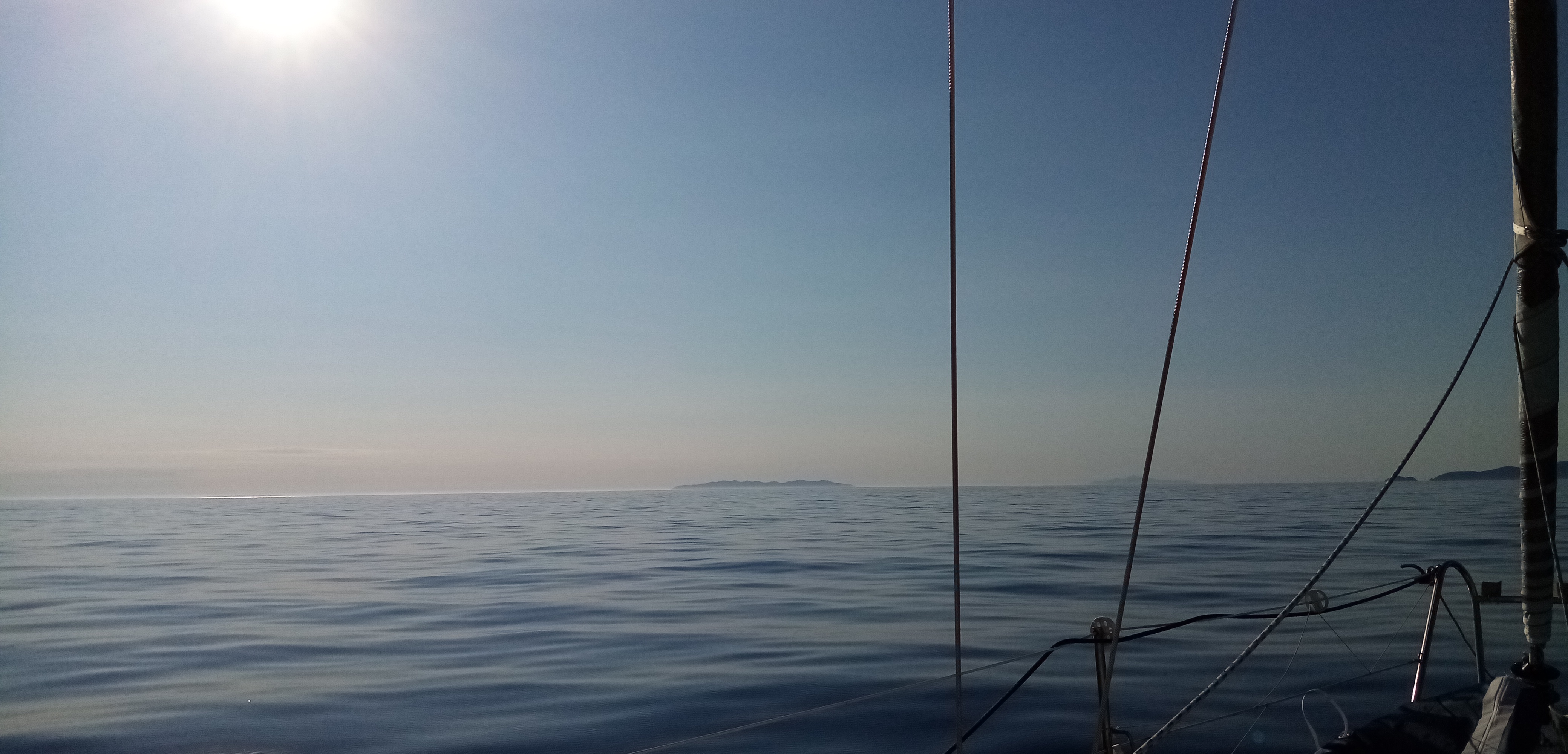 Après quelques erreurs d’appréciation nous apercevons de façon très claire les 3 premières îles Toscanes qui se distinguent nettement dans le coin du Cap Corse. On dirait presque un mirage.
