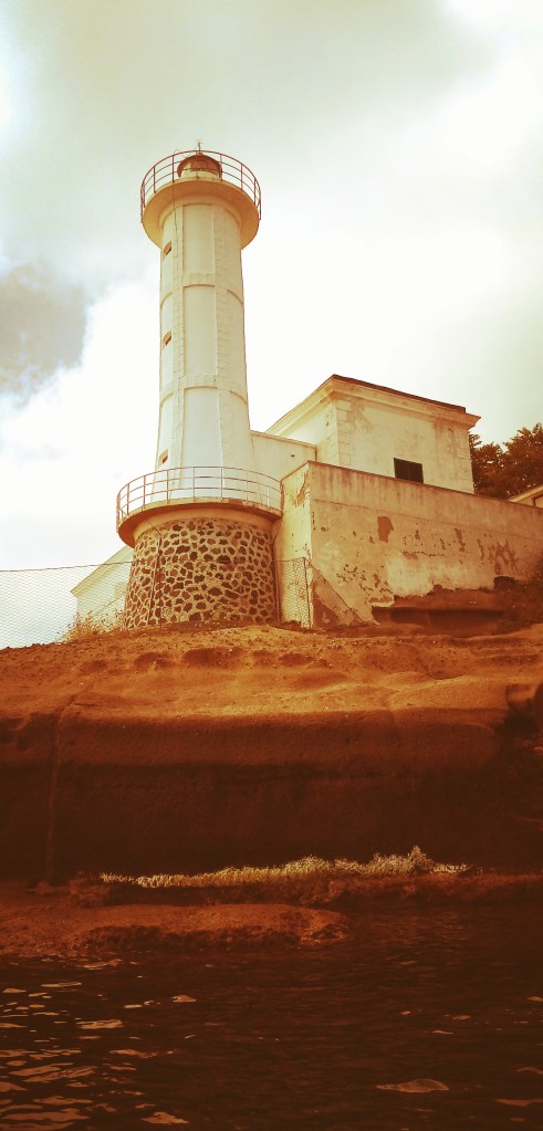 Nous avons hâte d’aller à terre. Et rapidement, nous mettons le babarounet à l’eau pour partir en exploration. L’arrivée en annexe dans le port est une expérience unique. On parcourt l’histoire et c’est avec respect et en silence que nous nous glissons en son sein. Nous trouvons une place pour l’annexe au fond du port. Moment d’émotion, je l’amarre en faisant un noeud de cabestan sur une bitte antique en tuf volcanique. Une fois à terre nous sommes transportés dans une époque perdue, un monde perdu. Le port romain abrite une vie bigarrée de plongeurs, de vendeurs d’épices et de bocaux maisons, de petits bistrots creusés à même le stuf dans d’ancienne échoppes romaines. L’île est célèbre pour avoir été occupée par Agripinne la mère de l’empereur Caligula. Elle a été en exil ici et, à sa mort, Caligula en personne est venu sur l’île récupérer ses cendres. J’imagine les galères amarrées dans le port et les cohortes de centurions et légionnaires accompagnant l’empereur fou.