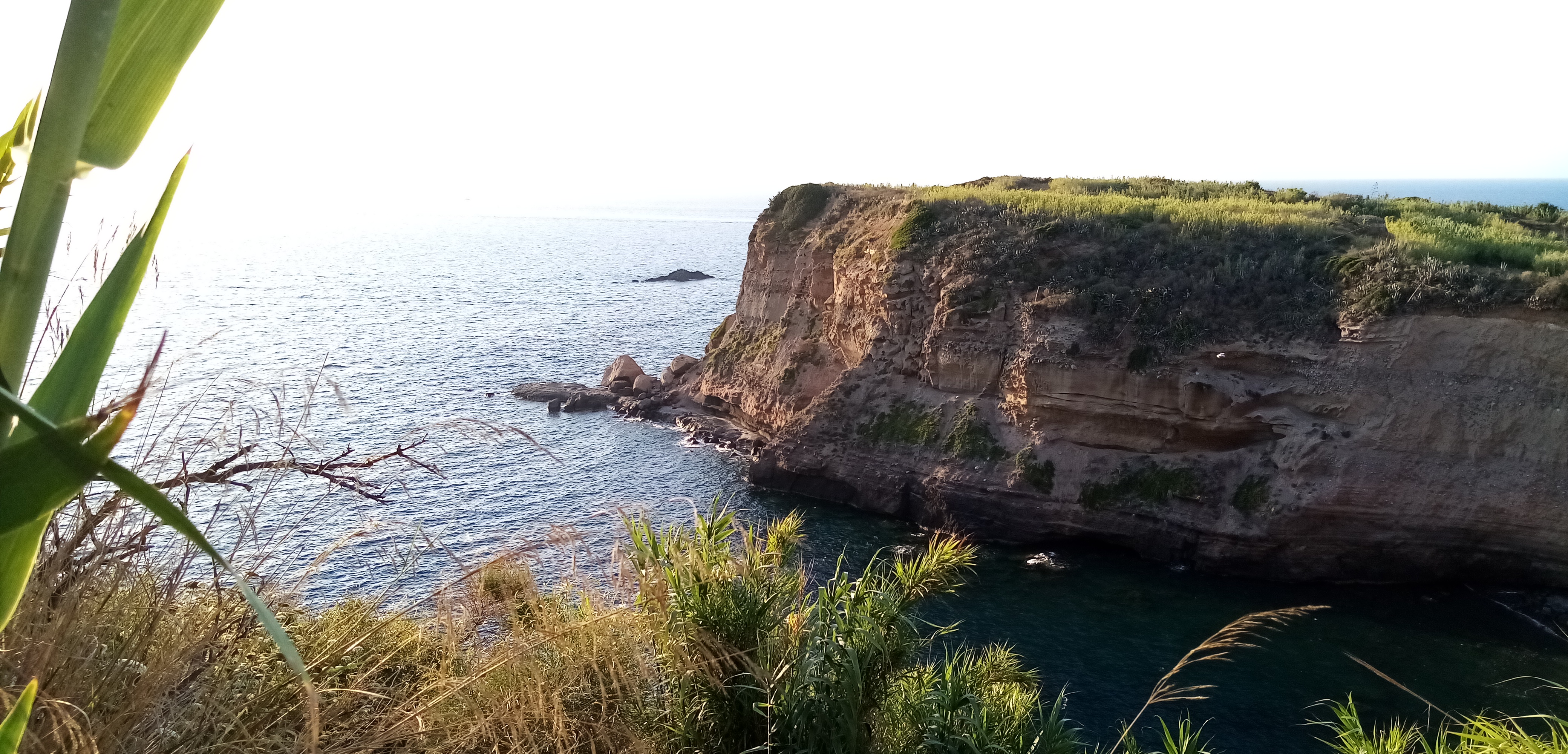 La nuit a été d’une grande douceur et nous nous levons avec le soleil illuminant Ventotene, notre escale préférée avec Capraia. Mais la chaleur devient vite insupportable et moite, signes annonciateur d’un changement de temps. Un vent fort d’est est d’ailleurs prévu pour ce soir et demain matin. Il va falloir réfléchir à l’endroit pour se protéger. Il n’y a que 2 solutions car l’ouest de l’île n’est pas pratiquable : soit partir à Ischia mais sans vent soit aller au port commercial, spartiate mais semble t il a 25 €. Bien entendu nous prenons la 2e option mais nous devons nous présenter qu’à partir de 17h30. Parfait, cela nous laisse du temps pour arpenter l’intérieur de l’île.