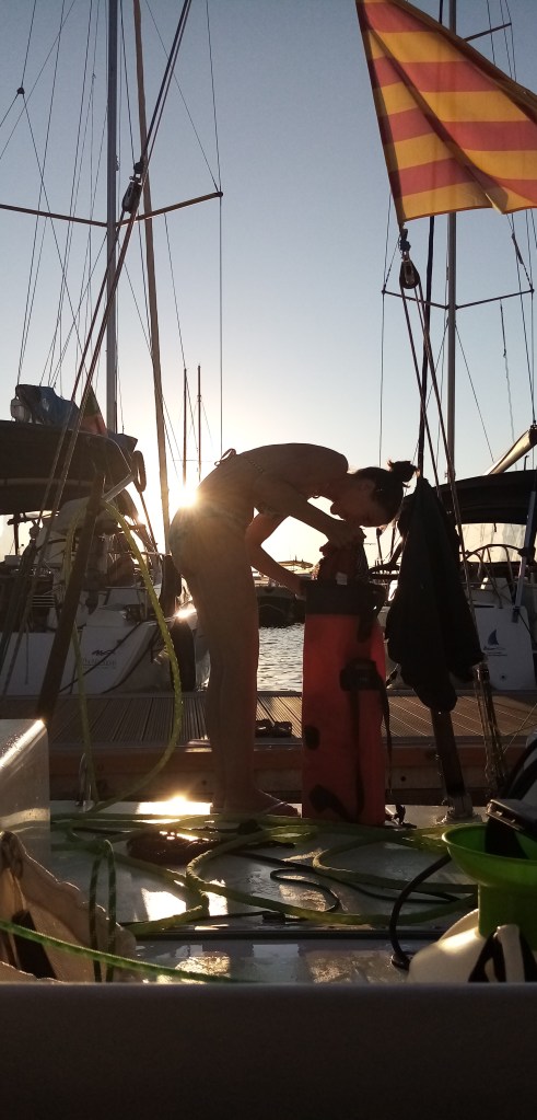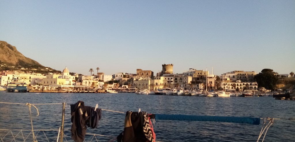 La fin de la journée approche et il est temps de retourner au bateau pour notre dernière soirée à Ischia. Je précise quand même que la nuit est de 70€ avec des douches plus que rudimentaires. Il est aussi temps de préparer le bateau et de s’atteler aux tâches ingrates…