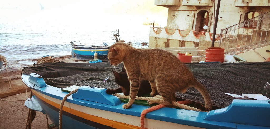 Le petit village de Scilla est un joyau au milieu de ces montagnes. Des petites maisons pittoresques et modestes font face à la mer et entourent le petit port occupé encore par 2 bateaux typiques de la pêche à l’espadon (un mat vigie de très grande hauteur et une proue d’une longueur équivalente pour poster l’harponneur). Avec Doriane nous déplorons la chasse à cet animal en voix d’extinction. Je respecte les traditions mais quand celles ci voient des hommes s’entêter à les faire perdurer jusqu’à la dernière écaille de poisson, cela frise à la bêtise humaine.