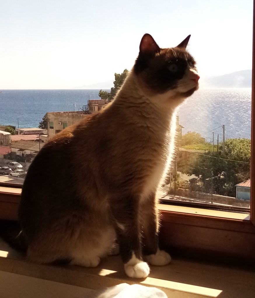 Finalement tout se passe bien et nous arrivons à Reggio di Calabria. Il faut demander l’autorisation aux autorités avant d’entrer dans le port. Nous arrivons à une place sur un ponton avec peu de bateaux. Nul doute que nous ne sommes pas dans un port habitué à la plaisance mais l’accueil est hyper sympa avec 4 gars du type vieux marins blasés assis à l’ombre d’une guérite bleue et blanche. Le vent est fort et rend la chaleur supportable. Nous posons vite le pied à terre pour rejoindre l’hôtel où nous attend une chambre pour nous remettre de nos semaines de fatigue et de houle. La chambre est super avec vue sur l’Etna et la côte de Sicile. Enfin une douche, enfin un lit, enfin du frais… Notre aventure nous permet aussi d’apprécier le confort de la civilisation que nous avons voulu quitter.