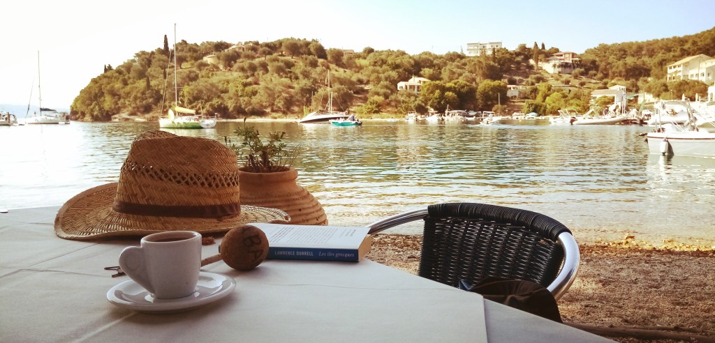 J’ai jeté mon dévolu pour le dîner. The white house. Rien à voir avec Trump mais c’est le nom d’un restaurant très joli, tout blanc, qui surplombe la baie. C’est l’ancienne maison de l’écrivain voyageur britannique Lawrence Durell, dont j’ai un livre à bord, passionné par la Grèce. La vie de ce personnage du XXe siècle est exaltante. Né au début du siècle au sein de l’empire Britannique des Indes Orientales, il aura donné à la Grèce ses plus beaux écrits de voyage. Tantôt descriptif, tantôt historique, toujours juste et onirique. Le dîner se passe seul à une table un peu en hauteur à observer tout ce petit monde à majorité anglo saxonne. Un petit groupe de jeunes trentenaires hautains de London entre pour dîner. 6 têtes à claques. 3 nanas, 3 mecs. On sent que ces 6 là bossent dans la finance ou le marketing. Des pantacourts aux couleurs audacieuses, un style faussement décontracté. Les mêmes qu’à Paris. Je les aime pas.