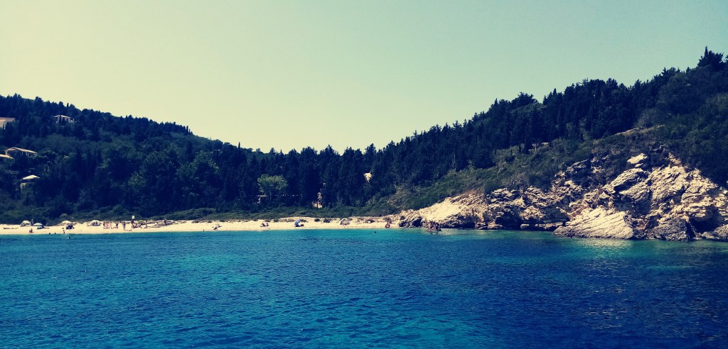 Je décide d’aller mouiller dans la crique de Kipiadi, loin des foules de Lakka et Gaia. La crique est bien protégée du vent d’ouest à sud ouest et surtout est quasi vide à mon arrivée. Je dois me reprendre à plusieurs fois pour bien poser l’ancre sur des fonds sains de sable et non de roche ou de posidonie. Ça y est j’ai vise un plan de sable, je laisse filer dérivant sous le vent soutenu. Le paysage est magnifique, forêts, plage de galets blancs tout ronds, une eau d’une transparence incroyable et plein de poissons. D’ailleurs en snorkeling, plus tard, je verrais des girelles, et surtout des poissons perroquets, incroyable. Il est temps de profiter de cet endroit magique, calme et apaisant. Après le stress de la veille, je suis justement récompensé !