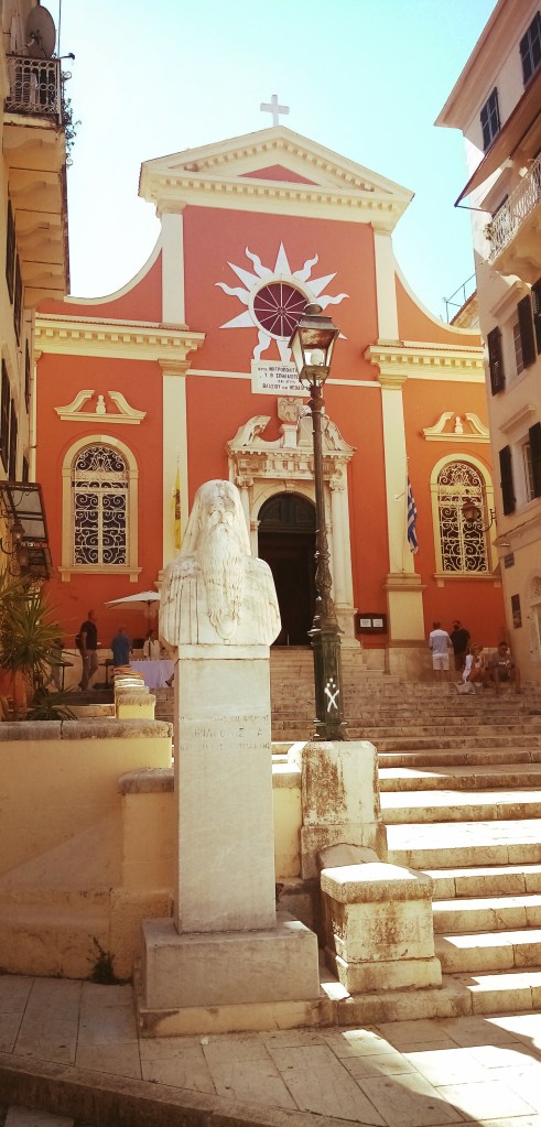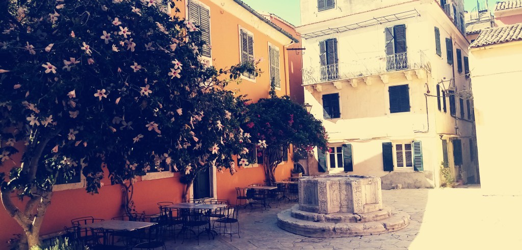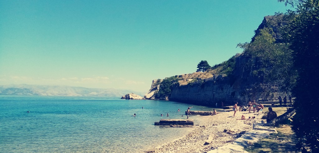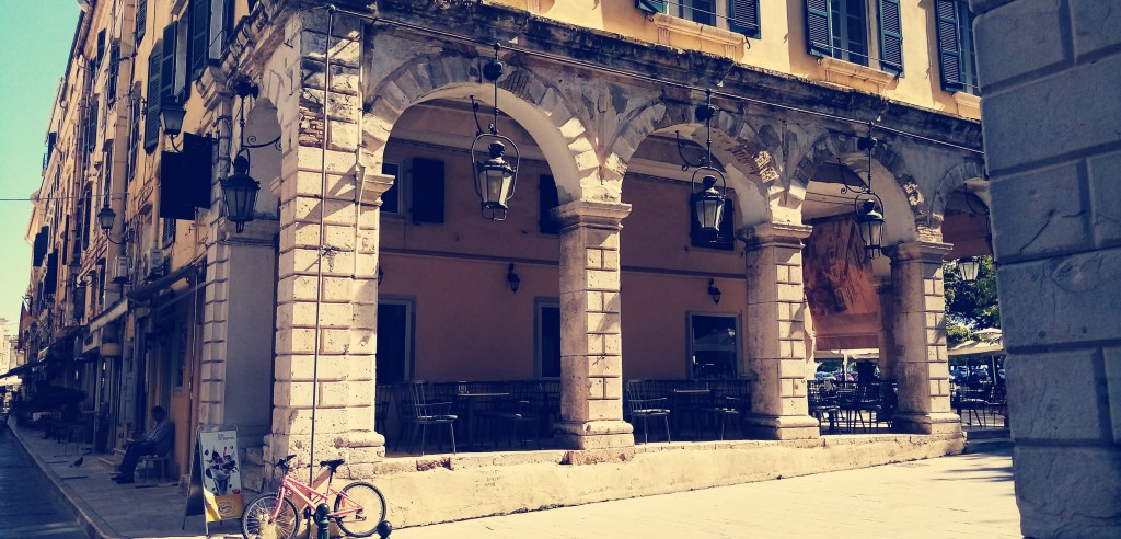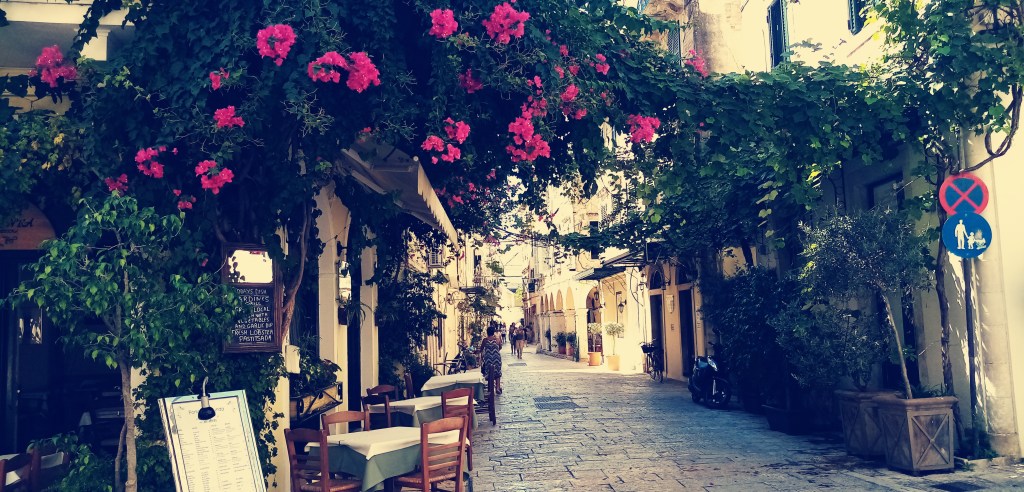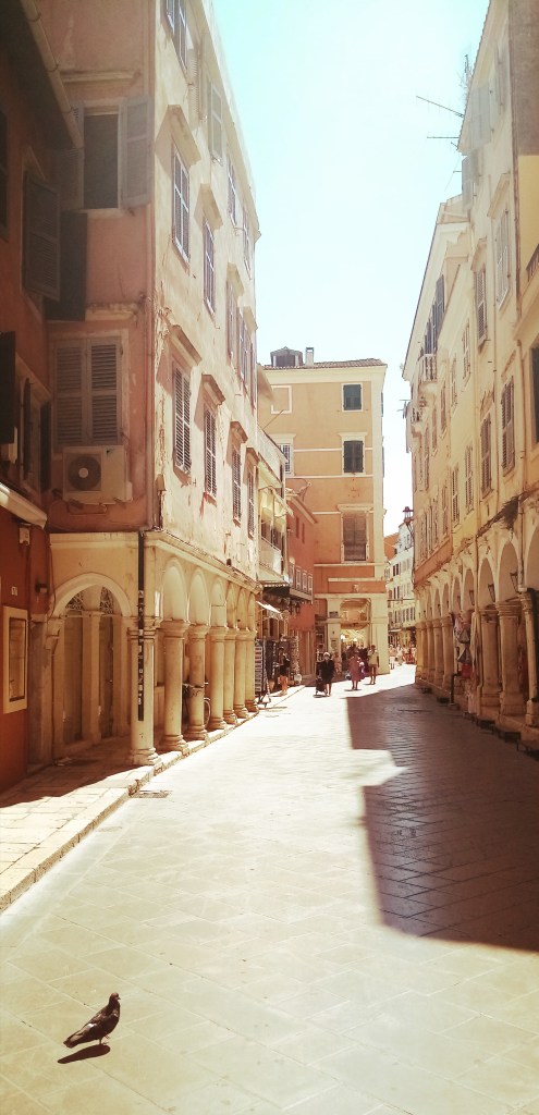 Le lendemain nous décidons de rester une nuit de plus dans ce charmant port. Tout le monde est adorable et nous sympathisons avec un couple d’italiens totalement bilingues en français. Le temps d’échanger sur les bons plans à venir et nous partons en exploration de cette belle cité. 3 influences se partagent l’apparence de la ville. Française, sous Napoléon, avec un quartier qui ressemble à la rue de Rivoli en miniature avec de belles arcades. La plus grande partie de l’architecture de la cité est née de la Sérénissime, une des plus importantes thalassocraties, qui avait, pendant plusieurs siècles, dominé toute la partie orientale de la Méditerranée. Et enfin anglaise, mais là, j’avoue n’avoir rien trouvé d’anglais dans l’apparence. Corfou, comme l’écrit si bien Lawrence Durell, est un endroit qui vous absorbe, vous met dans un état de torpeur et ne vous lâche plus. C’est d’ailleurs ce qu’ont ressenti les puissances qui se sont relayées ici, car force est de constater que, au bout d’un moment elle s’y sont endormies et ont dû en repartir, sans avoir achevé ce qu’elles ont commencé. C’est aussi ce sentiment que j’ai dans le port avec une sorte de communauté bigarrée qui semble avoir pris racine ici. Mais nous, on a encore de telles merveilles à voir que nous devrons repartir le lendemain. En attendant, nous arpentons les ruelles étroites, parfois touristiques, parfois authentiques, toujours empreintes d’histoire. Au détour de l’une d’elle, se dresse une église Orthodoxe aux icônes richement dotées. Ici encore une tonnelle de vigne au dessus d’une petite taverna donne un peu de fraîcheur au voyageur. Nous nous arrêtons d’ailleurs à l’une d’elles, dans un état de léthargie propre au lieu. Le soir se passe tranquillement au resto du port dans la quiétude et la douceur grecque que découvre Doriane.
