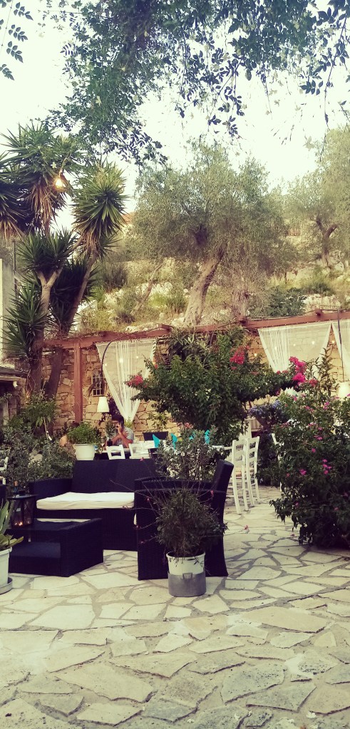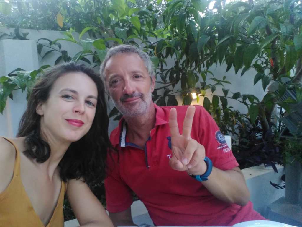 – faire appel à un mécano par le port. Je décide cette solution plus raisonnable. Problème ça va me coûter une blinde qui va fortement grever le budget (car difficile de changer une vanne à l’eau, il va devoir peut falloir mettre le bateau à sec. Et la mise à sec n’est possible que de l’autre côté de la baie à environ 30mn de bateau, problème je ne peux pas lancer le moteur, il est donc possible que l’on doive le tracter… Bref merdier total). Mais ai je le choix ? Je suis un peu abattu. Mais nous décidons le soir d’aller boire 2 verres de ouzo dans un endroit secret et romantique de Preveza dans une petite ruelle de tonnelles de jasmin et de lampions. Ma Doriane a toujours les mots pour rendre une situation compliquée abordable. Preuve que je progresse avec elle, en temps normal, j’aurais été énervé, abattu. Là, finalement ce n’est pas le cas. Passée la légitime angoisse j’ai vite repris du poil de la bête. On verra demain avec le port si ils ont trouvé un chantier pouvant intervenir. Pendant ce temps nous nourrissons de sardines grillées une jolie jeune chatte toute maigre avec le même regard que Solenzu en Corse…
