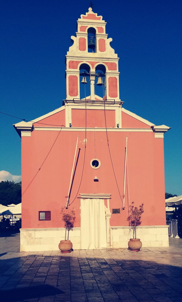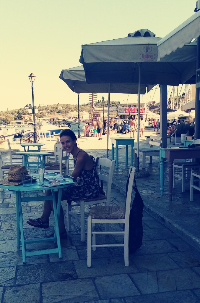 Il est bientôt midi, il est temps de repartir en direction de l’île de Paxos distante de 18 milles. Le vent est pour l’instant faible mais il monte progressivement en puissance au moment de déguster nos traditionnels sanwiches… Nous arrivons à 17h à l’entrée du port de Gaios sur Paxos. Celle-ci n’est pas évidente à voir depuis la mer mais une fois à l’intérieur du bras de mer c’est hyper tranquille. La mer forme un coude qui entre carrément dans la terre entre une petite île et la grande île de Paxos. L’endroit est sublime et fleure bon la Grèce typique. Nous allons bientôt nous essayer à la manœuvre typique d’un amarrage à la grecque. Étrave ou cul au quai en ayant auparavant mouillé l’ancre. Doriane est à l’avant, prête à amarrer le bateau au quai et moi au moteur et prêt à mouiller l’ancre par l’arrière. Pour ce faire j’ai frappé sur mon ancre lourde une chaîne de 6mm de 4 mètres et ensuite un bout de 30 mètres. On est dans l’axe, Doriane est prête, elle a déjà demandé à un gars sur le quai de passer les aussières dans une boucle. Je balance l’ancre et laisse filer au fur à mesure que j’avance. La chaîne se tent, les amarres avant sont au taquet, on est parés ! Manœuvre réussie. Bien joué à l’équipage.