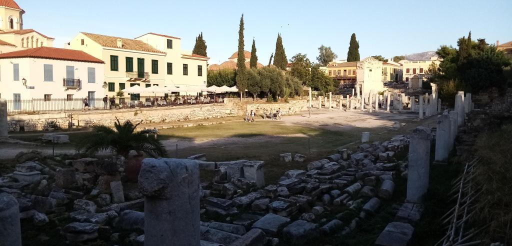 Nous retournons ensuite au quartier de Plaka de la veille. La météo est enfin clémente et la douceur est de mise. Nous flânons le long de l’antique Ágora. L’ambiance est douce et apaisante au milieu d’une végétation peu commune pour un centre ville, des pins, des oliviers. Au détours d’une ruelle perdue nous découvrons un artisan joaillier qui nous fait découvrir son monde de création autour d’un verre de Raki (eau de vie). Son histoire est singulière, il a souffert d’une tumeur au cerveau il y a 2 ans, ce qui n’a nullement nuit à son art, bien au contraire. L’homme, adorable, est à la fois joaillier mais aussi une sorte de Gepetto car il fabrique des marionettes et propose ses talents pour des spectacles vidéos et scénographiques. Nous restons longtemps dans son échoppe à bavarder sous le parfum de plants de jasmins odorants. Doriane me fait un cadeau magnifique que le destin a porté à moi : un petit voilier en métal avec son skipper miniature.