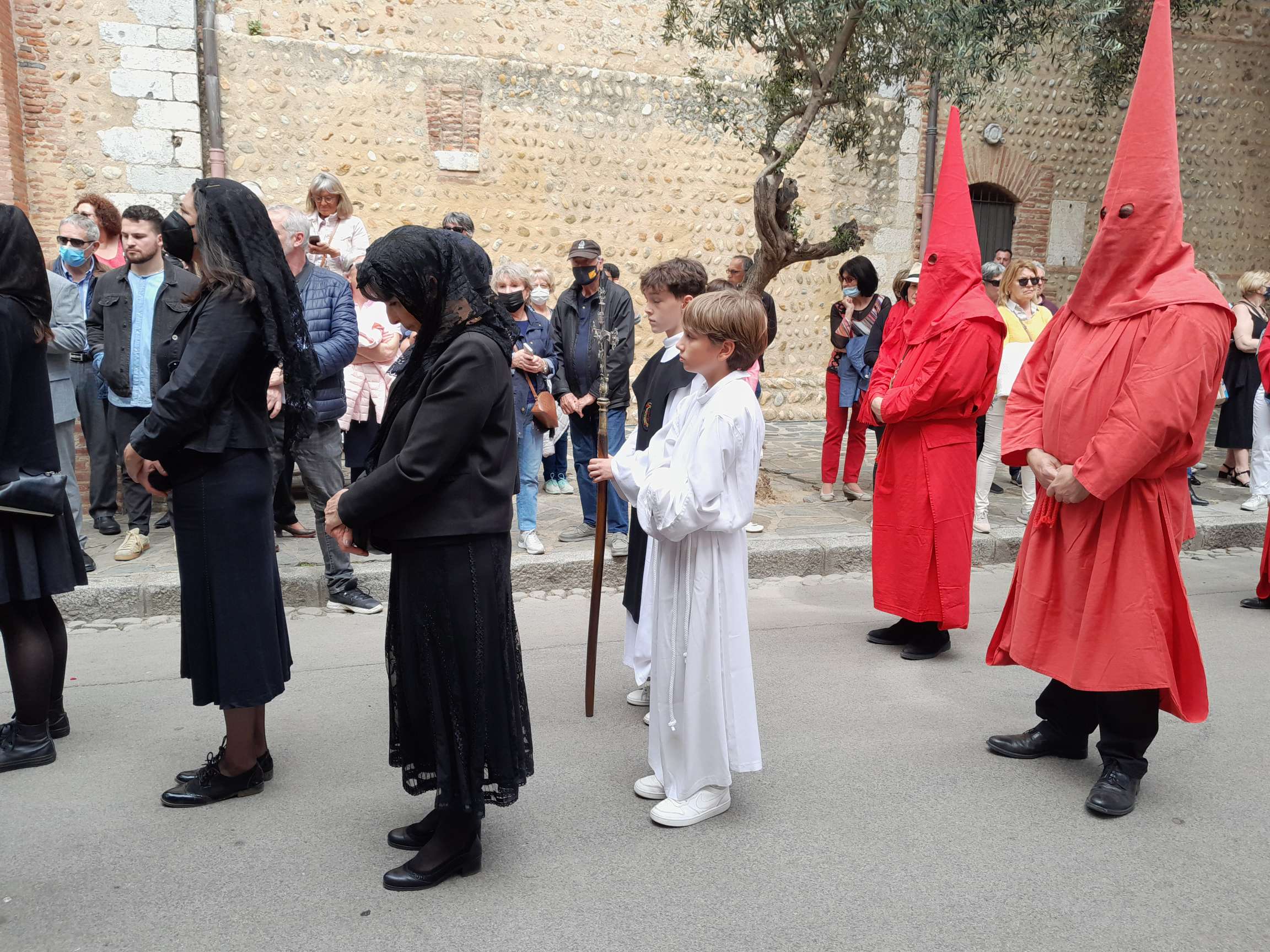Cela faisait 2 ans que la procession était condamnée au silence par le Covid. La foule de badauds semble plus silencieuse, plus respectueuse, comme si la période traversée avait trouvé son épilogue ici, maintenant, portant au recueillement collectif. C’est étrange ce que j’écris car je me définis comme chrétien non croyant.