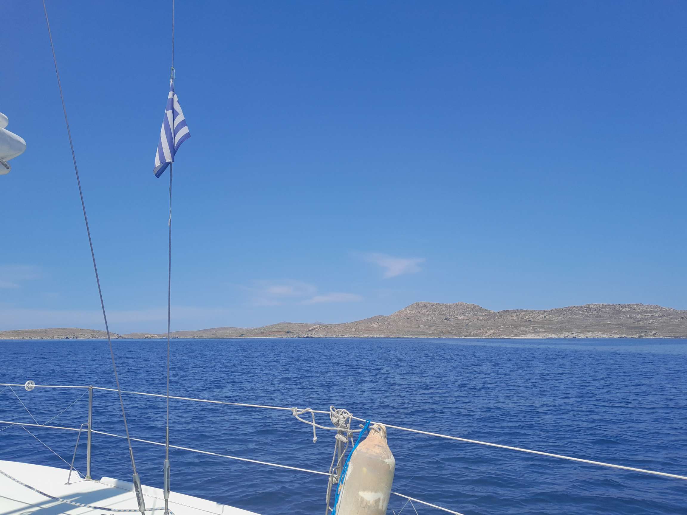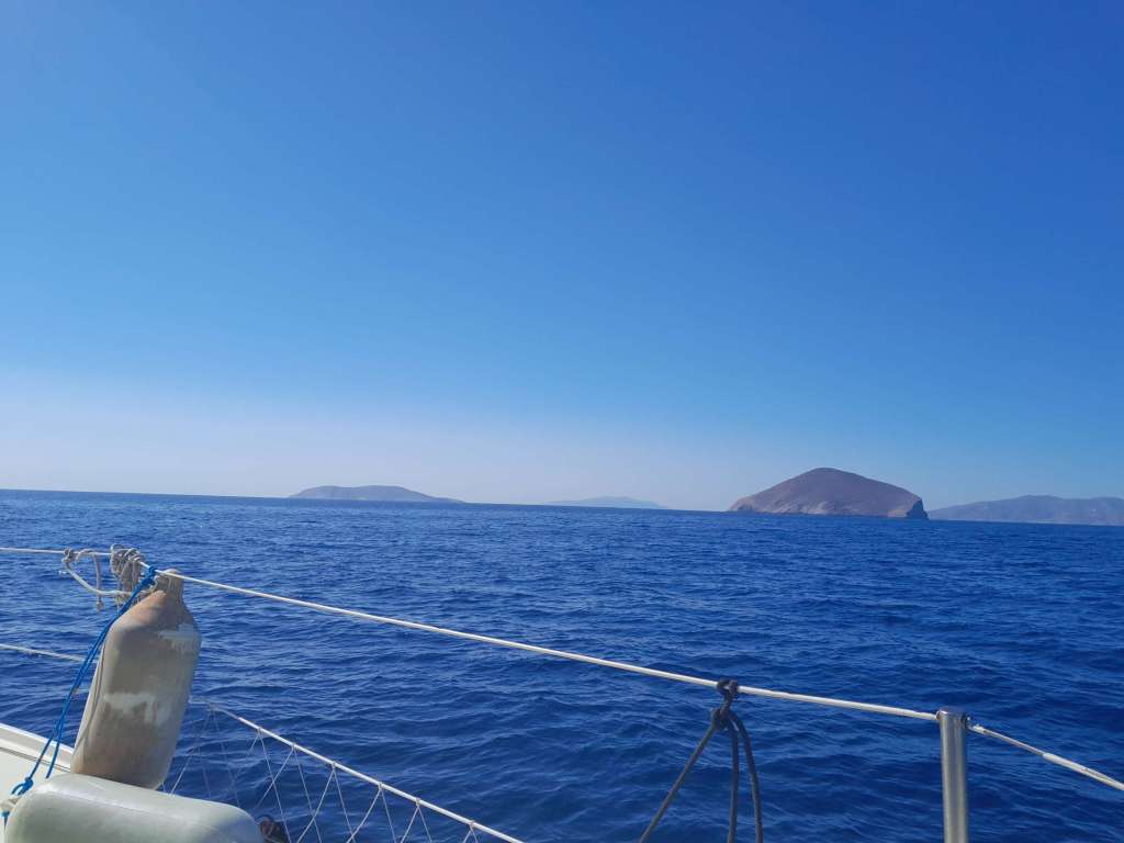 Après le petit déjeuner, je lève l’ancre pour aller encore plus au sud. Initialement je pensais rejoindre une crique sur l’île de Serifos mais le vent est si bon que je décide de manger les trente huit milles qui me séparent d’Anti Paros. Pour information, souvent, lorsque deux îles sont très proches avec l’une d’elle de taille plus imposante, la plus petite prend le titre de Anti.