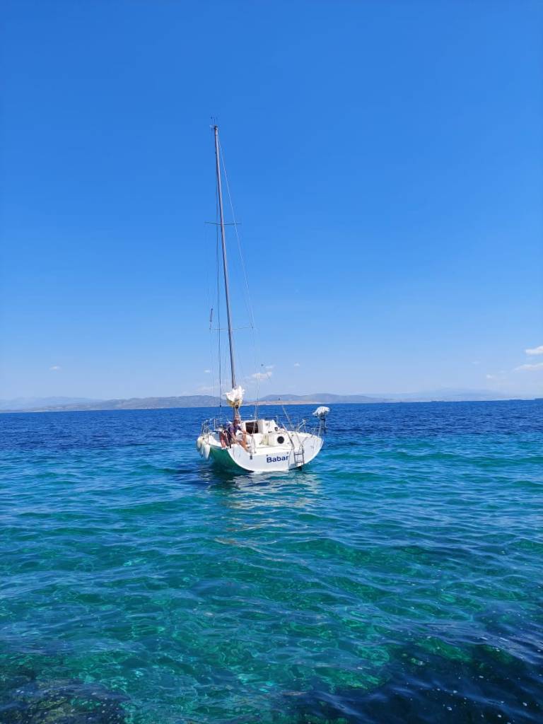 Au large de Poros, je croise mes amis du voilier Kaitos qui, après des déboires sérieux de moteur, ont mis le cap sur leur chantier situé plus au sud, à Kilada. Moment sympa de se rencontrer ainsi en pleine mer. La mer creuse un peu avec ce vent et Babar fonce avec assurance en direction de l’île d’Agistri. J’ai identifié sur la carte une crique à l’abri qui m’a l’air très sympathique, située sur le versant ouest de l’île. La navigation est fantastique, toujours sans brancher le moteur et je me régale à admirer les nombreuses îles du golfe avec un petit pincement au cœur, car c’est une des dernières fois où je me balade dans ce coin. Et oui, avec ma future situation, il ne sera plus possible de continuer à écumer la Grèce avec Babar… une autre histoire, un nouveau chapitre vont s’ouvrir et se raconter, toujours en mer mais différemment. Nous y reviendrons prochainement !