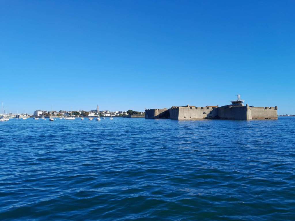 Nous doublons le fameux fort espagnol de Port Louis, l’un des seuls vestiges de la ville, totalement rasée par les bombardements alliés durant la seconde guerre mondiale. Lorient était occupée par les allemands aux premiers jour de l’invasion en août 1940 pour en faire un port à U-boat, les fameux sous marins de la guerre de l’Atlantique ayant coulé nombre de Liberty ship, les bateaux américains destinés aux ravitaillements anglais. Jusqu’à ce que les alliés mettent la main sur le boîtier Enigma qui leur permit de déchiffrer les cables allemands. Et ainsi d’intercepter plus facilement les « loups gris » de l’amiral Doenitz mettant fin à leur hégémonie sur les mers.