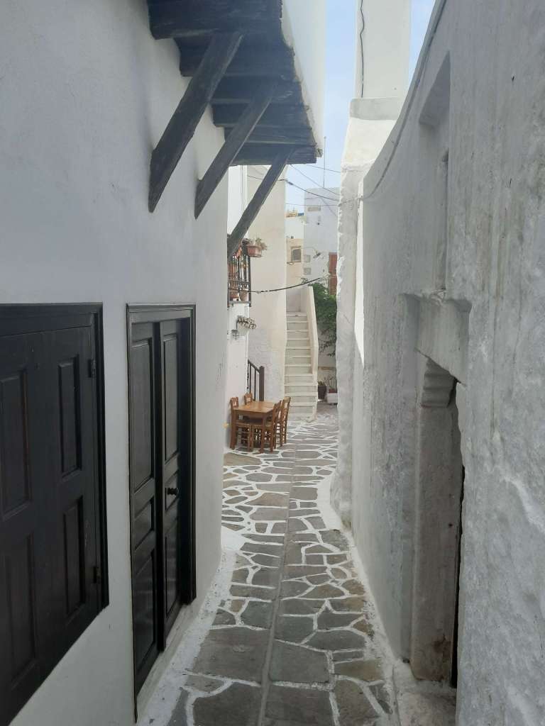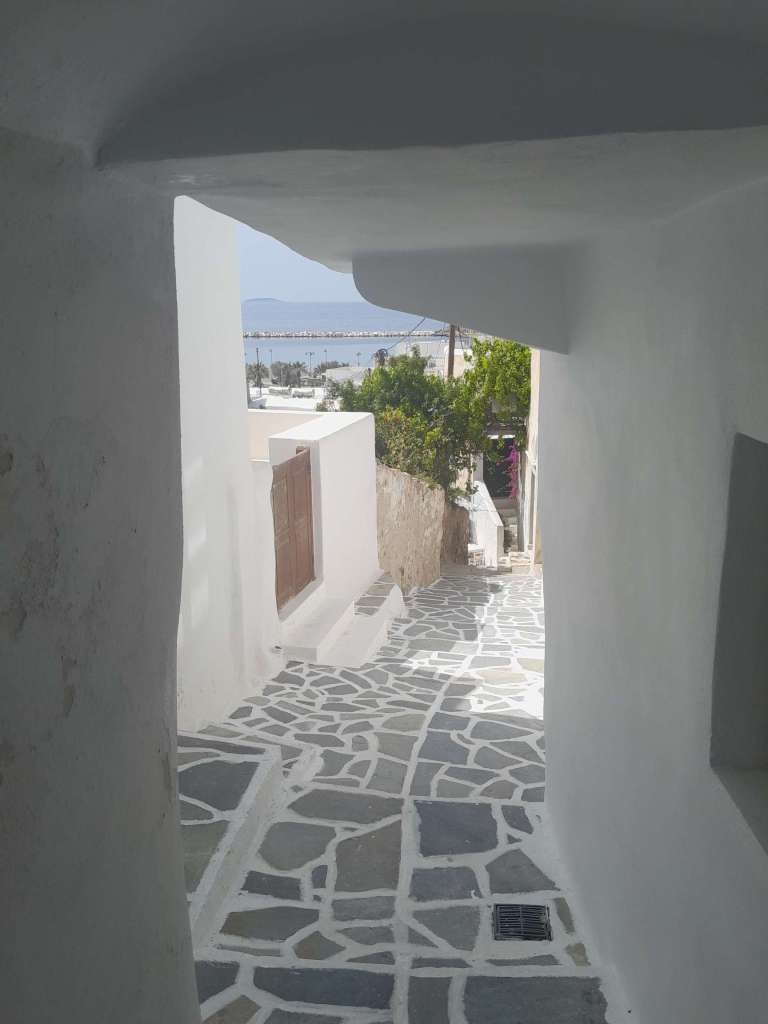 Je range soigneusement Babar pour le rendre presentable dans le port et je pars en excursion. Le village est typique des Cyclades avec des maisons à la chaux et des touches de bleu sur des volets ou des tuyauteries. C’est paisible et nonchalent même si ça sent un peu l’appareil à cash. On verra demain en arpentant les autres endroits de l’île à la recherche de plus d’authenticité.