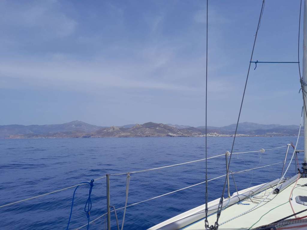 La situation météo de ces prochains jours se complique. Sur le bassin, il est prévu du vent d’est puis demain du vent de sud ouest qui va se renforcer jusqu’à jeudi. Puis un peu le bordel avec du Meltem qui rentre pour une durée évidemment indéterminée, ça serait trop facile. Bref je décide déjà de me mettre à l’abri dans un des ports de Paros ou Naxos selon les disponibilités de chacun. Je mets donc le cap à 7h45 en direction du premier d’entre eux, Naoussa à neuf milles au nord de Paros. On verra s’il y a de la place !